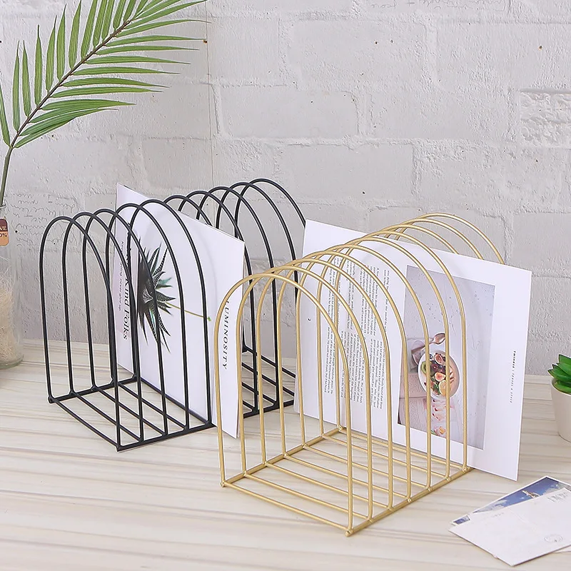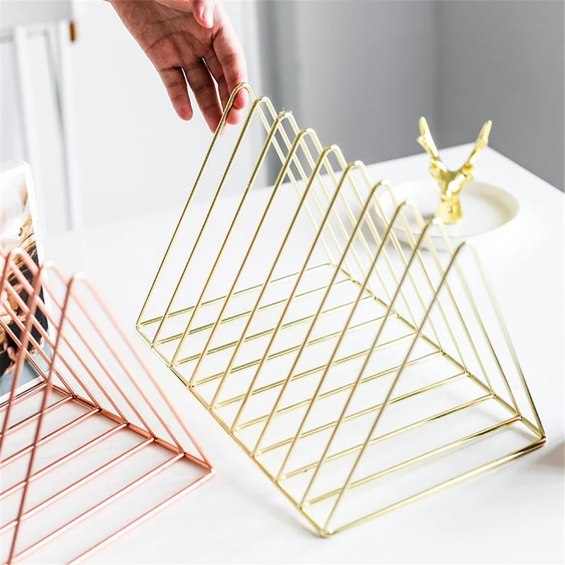 Роскошная книжная полка, Настольная металлическая подставка для книг, офисных газет, журналов, подставка для хранения, скандинавский декор, Золотая полка