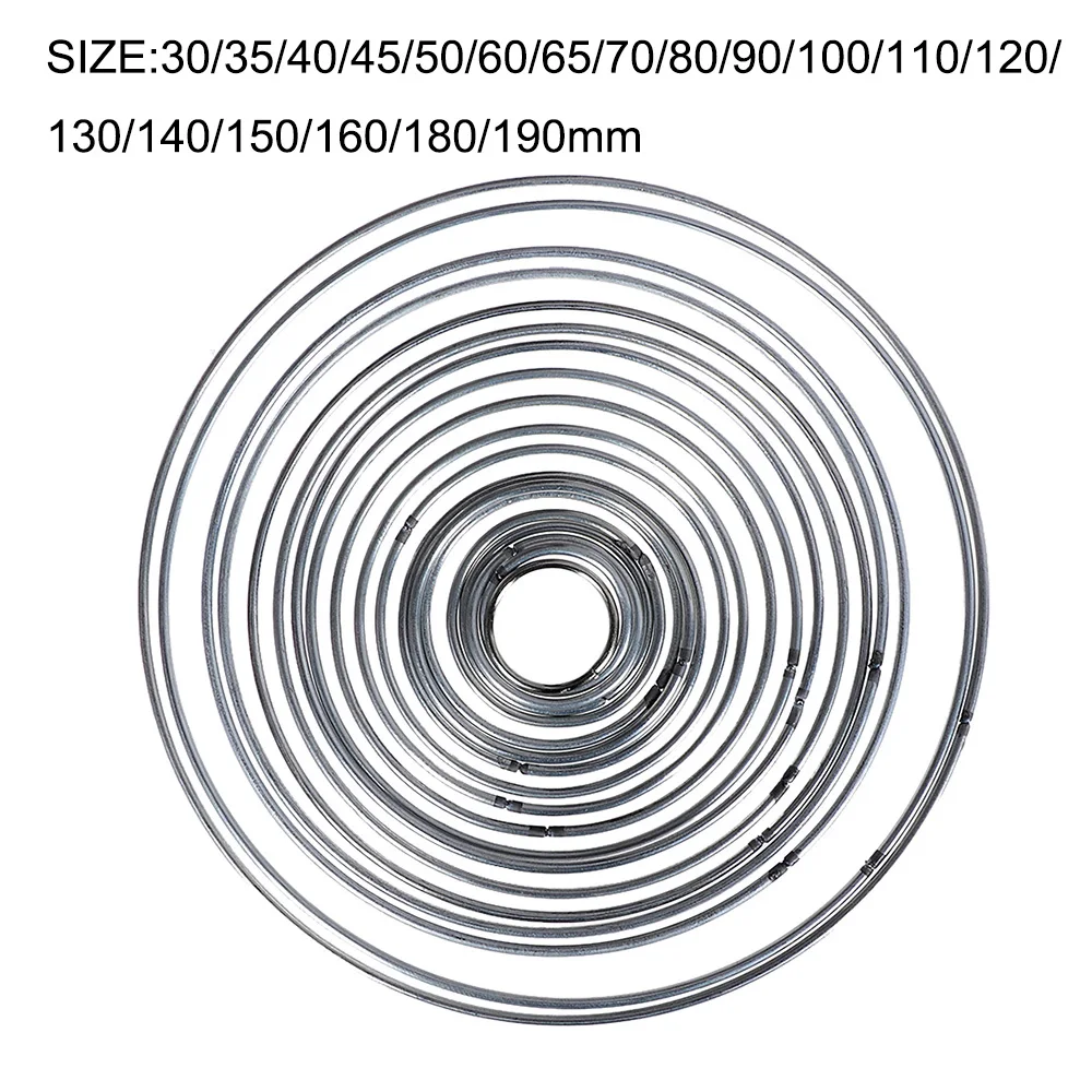 100% абсолютно новый и высокого качестваВысококачественный Железный материал, прочный и надежный.Сварная конструкция, не легкая деформация, не легко ломаетсяОтлично подходит для ловцов снов и мандалы, обернутых кожаными ремешками или крафтовой нитью.Цвет: серебристыйВнешний диаметр: 30 мм, 35 мм, 40 мм, 45 мм, 50 мм, 60 мм, 65 мм, 70 мм, 80 мм, 90 мм, 100 мм, 120 мм, 130 мм, 140 мм, 150 мм, 160 мм, 180 мм, 190 ммТолщина: около 2,8 ммПосылка включает в себя: 1 шт.