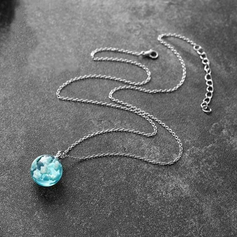 Ожерелье с подвеской в виде шара из смолы с голубым небом и белым о...