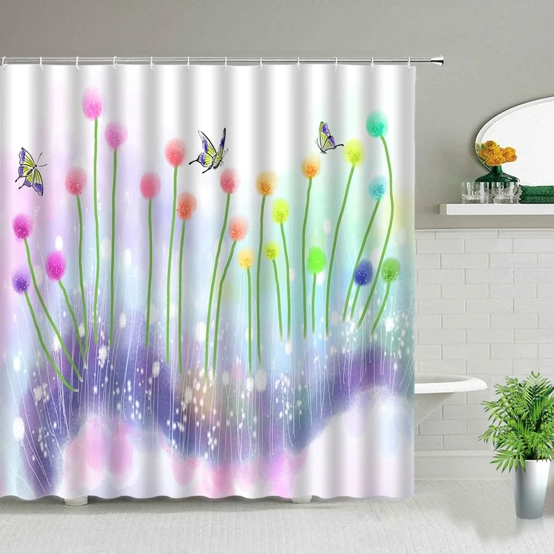 Душевая занавеска для душа с изображением одуванчика и цветов, зана...