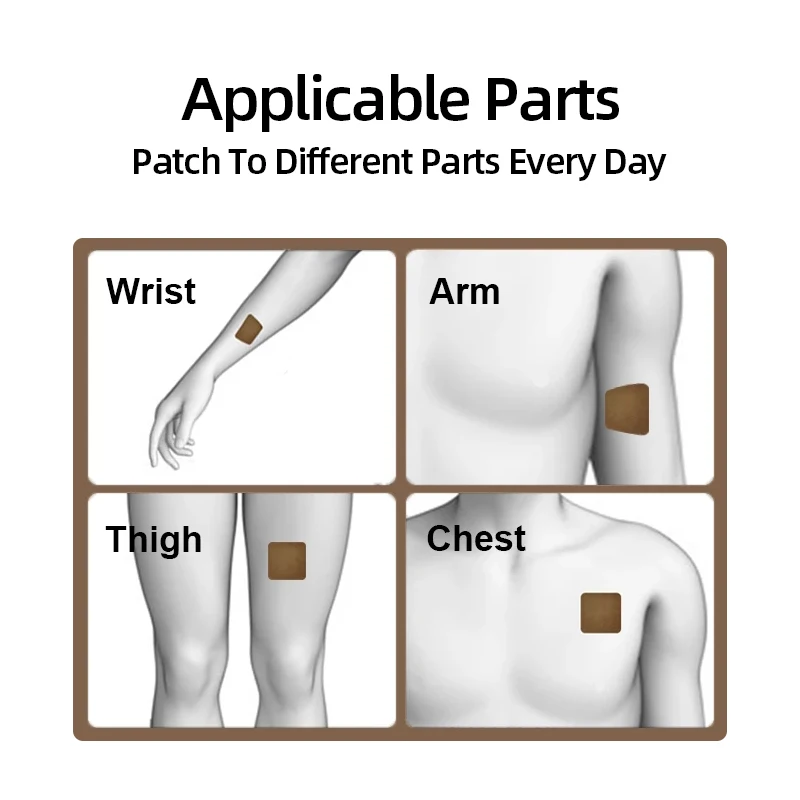 3. Наклейте пластырь на очищенную верхнюю часть тела, такую как руки, ягодицы, плечевые кости и т. д.