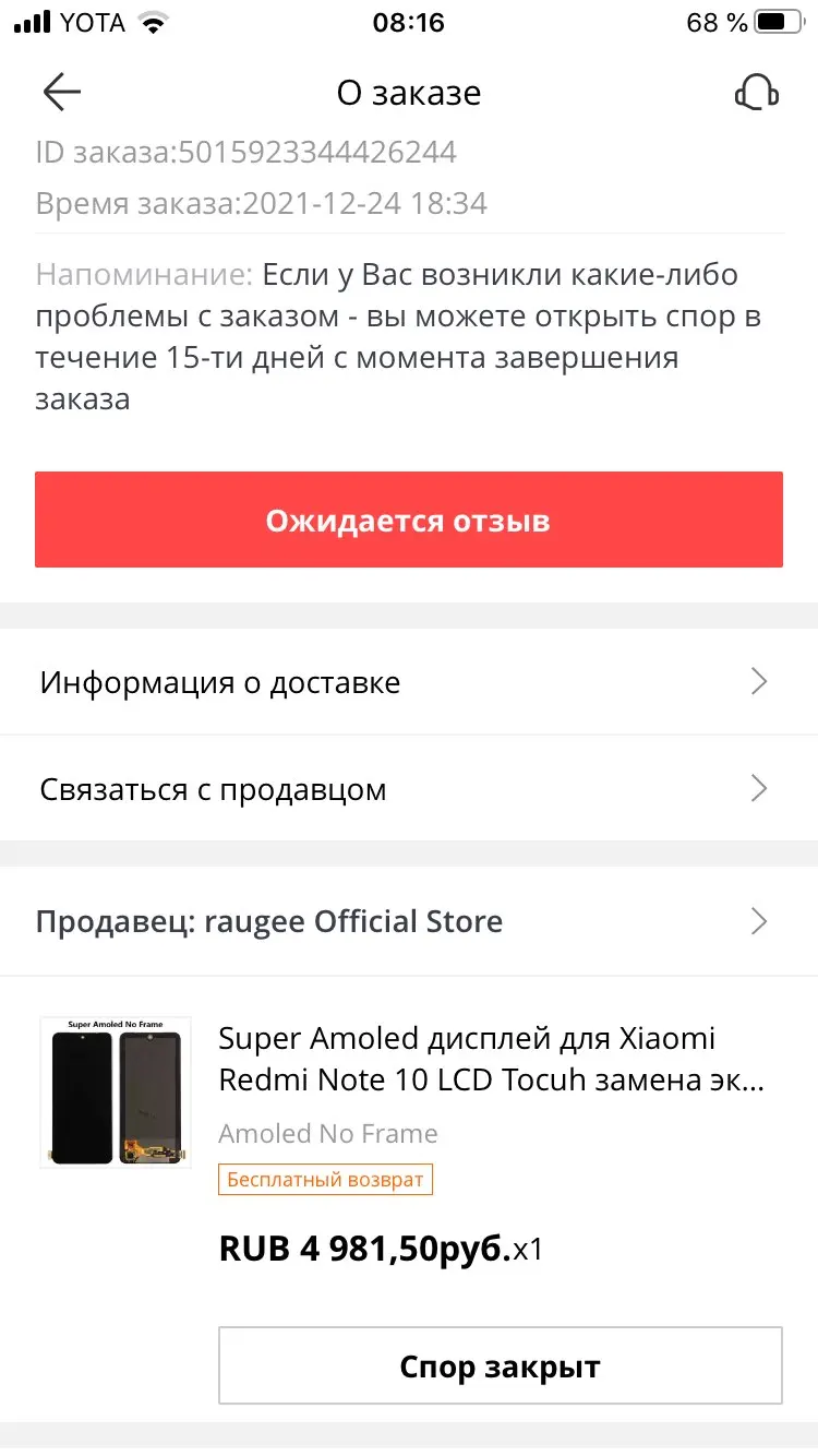 Страна: RU Color: Amoled With Frame Доставка: Standard Shipping 27.11.2021