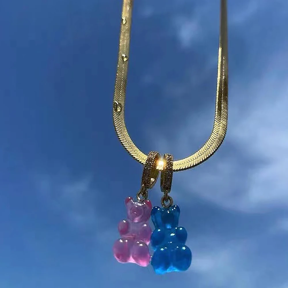 Ожерелье-чокер карамельного цвета с мультяшным медведем из циркония для женщин, цепочки сделай сам, цепочка из нержавеющей стали с шариками, ожерелье, ювелирные изделия для вечеринок