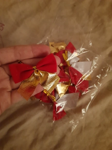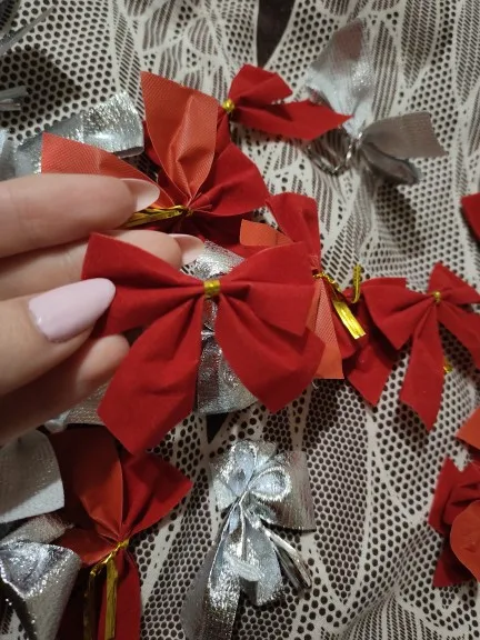 Прикольные бантики, но я ожидала, что будут чуть больше по размеру) но вполне даже ничего) идеально подойдут на небольшую елку)