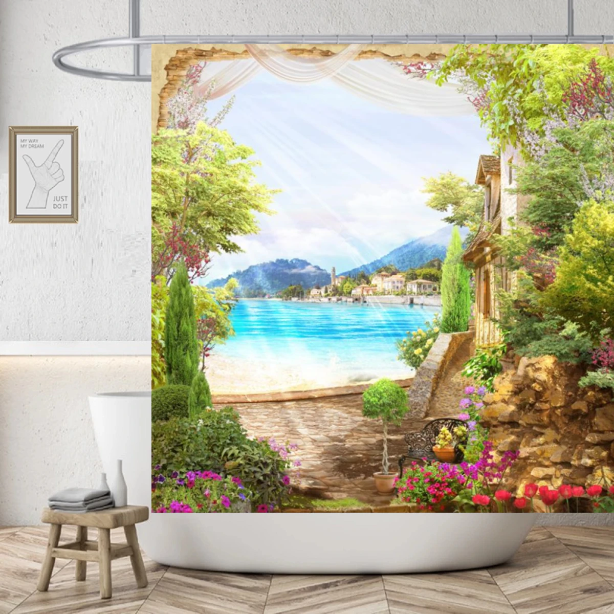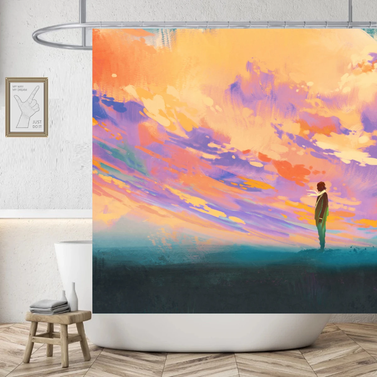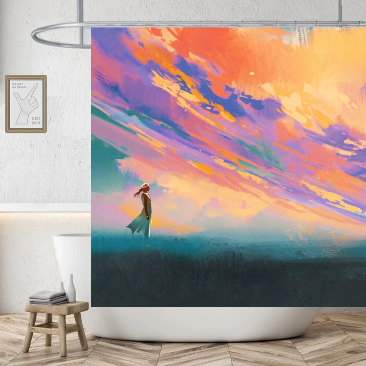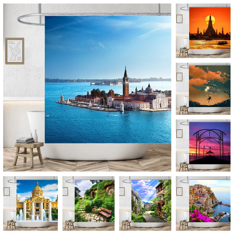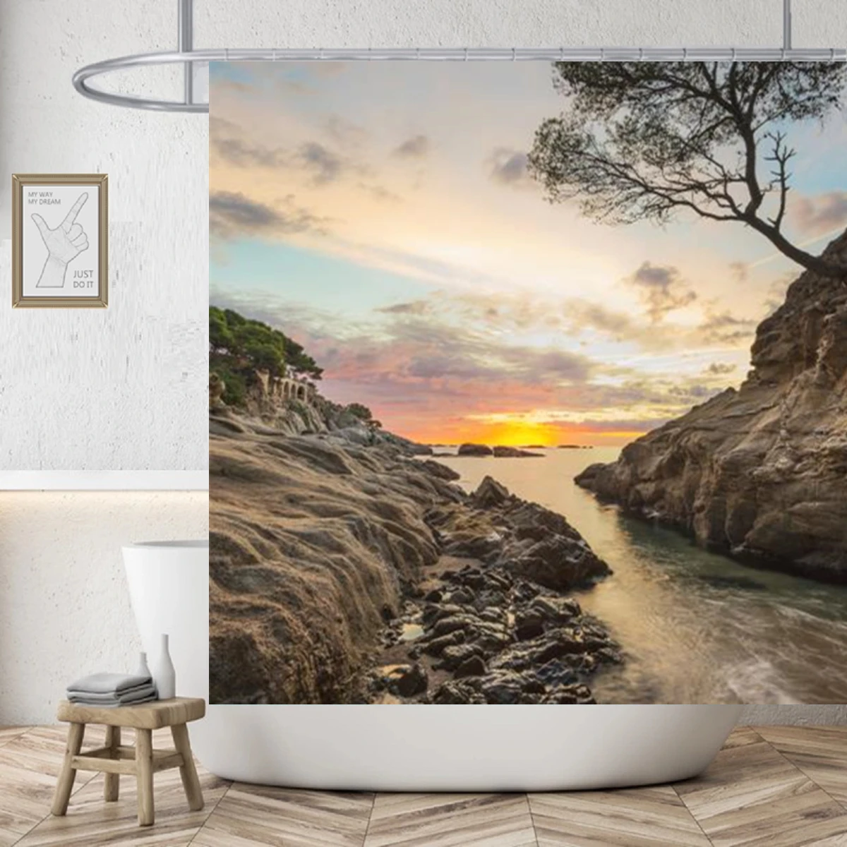 Штора для душа моющаяся с воздушным шаром и принтом ручной работы, Пляжная Водонепроницаемая занавеска с пейзажем заката, Полиэстеровая, для дома и ванной
