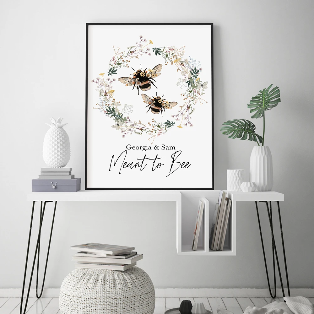 Настенный постер в скандинавском стиле с изображением венка и шмеля