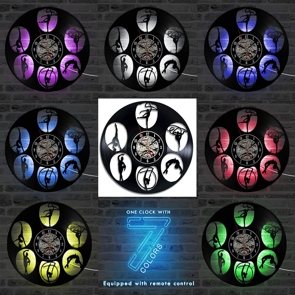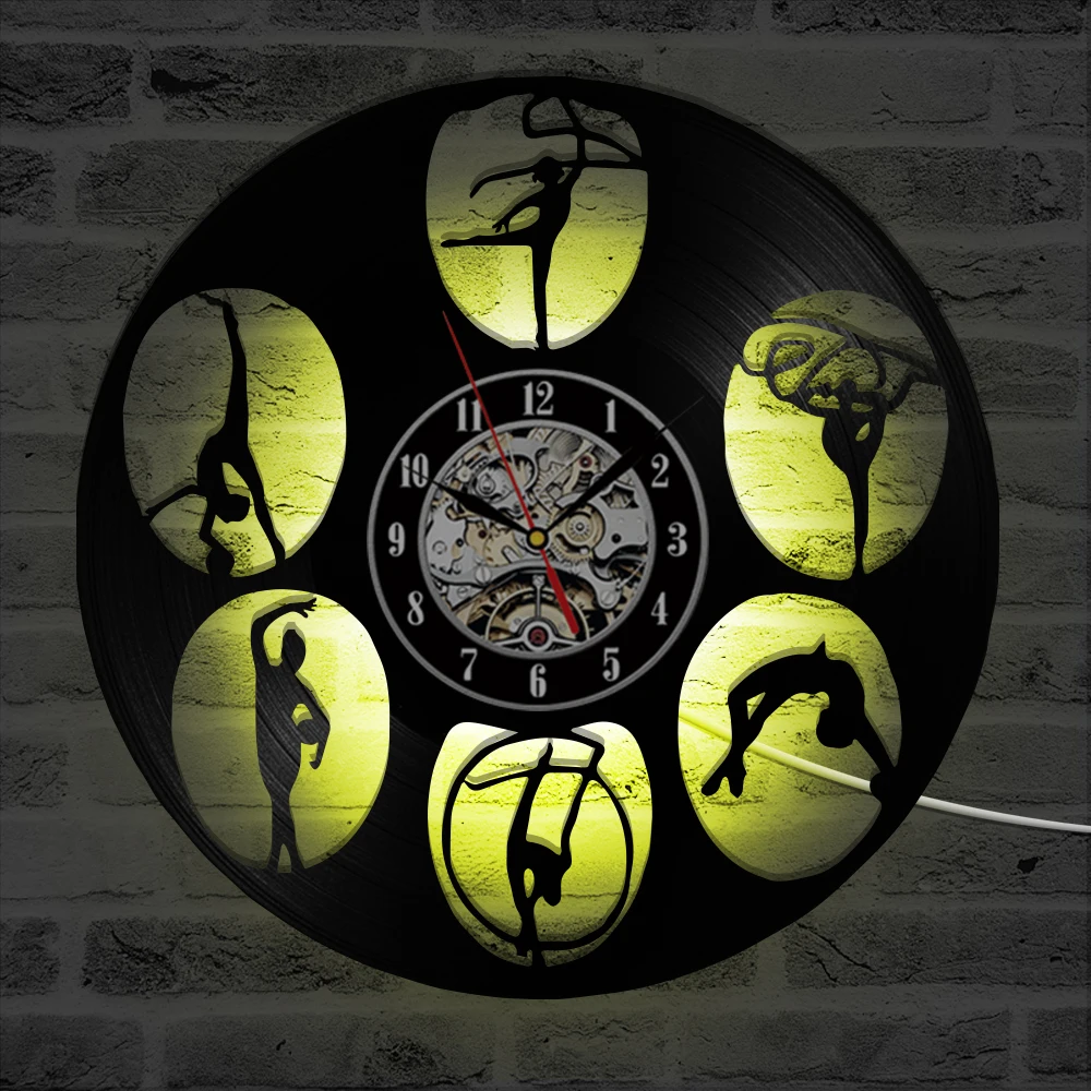 Гимнастический светодиодный ночник для девочек силуэт виниловая пластина настенные часы женский гимнаст художественный современный настенный светильник