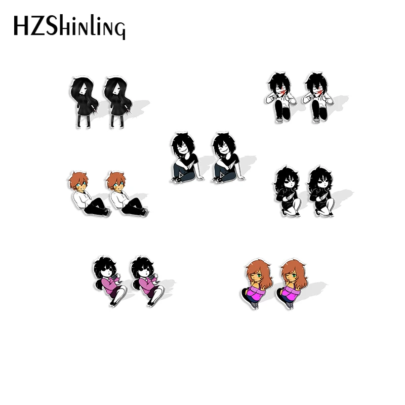 Серьги-гвоздики "Джейн и Джефф-убийца", из фильма ужасов, 2021 эпоксидные, серьги из акриловой смолы, для девочек, ювелирные подарки ручной работы