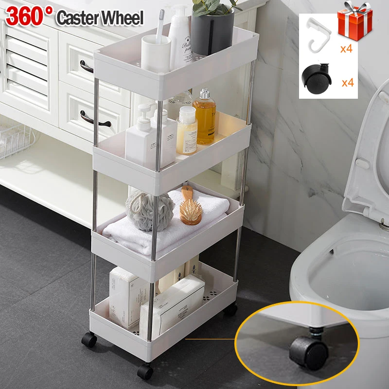 Новый стеллаж для хранения с 34 уровнями, кухонная тонкая скользящая башня, подвижная сборная Пластиковая Полка для ванной, колеса, компактный органайзер
