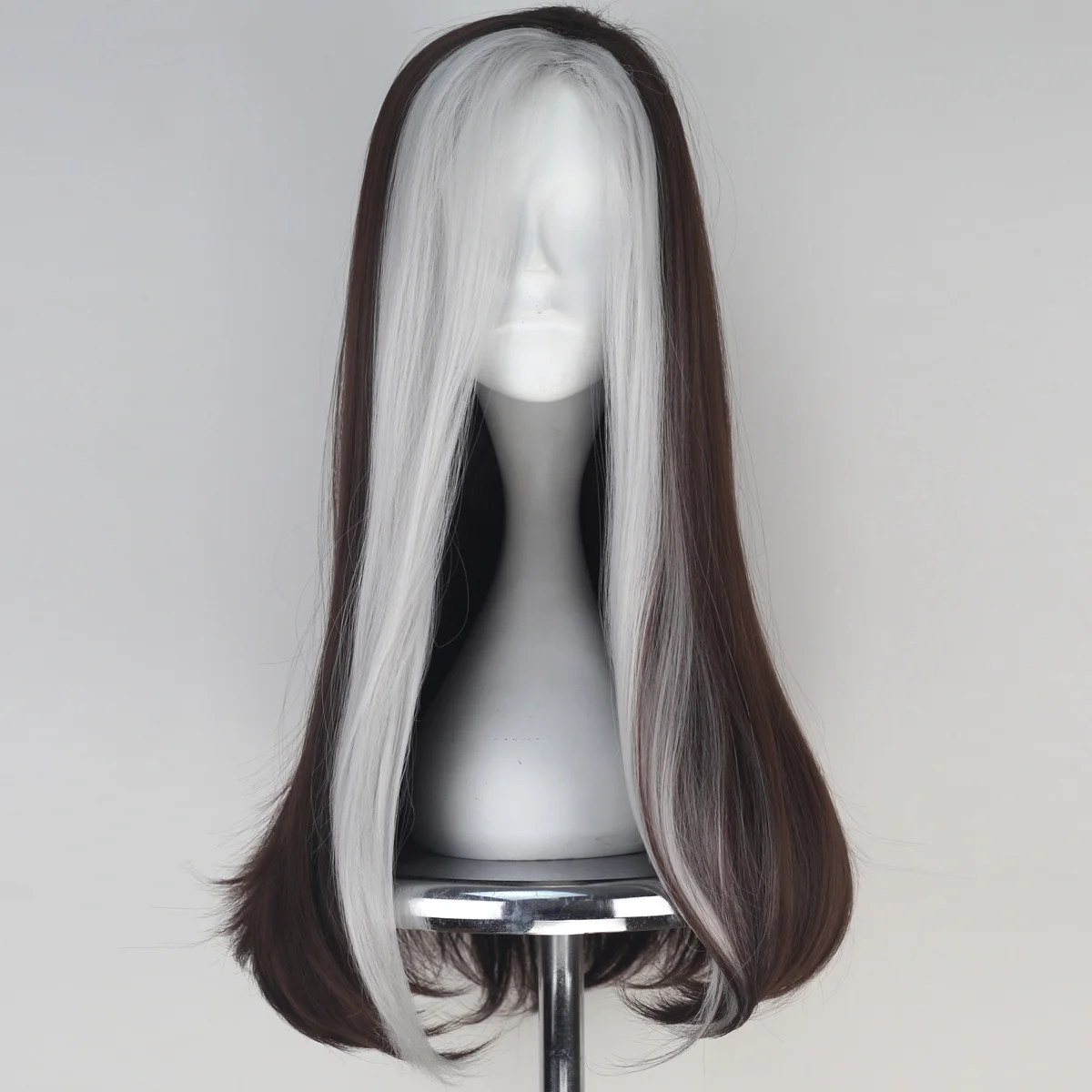 Парик для косплея из фильма X-Men Rogue, длинные коричневые и белые синтетические волосы для женщин и мужчин, костюм для вечеринки на Хэллоуин