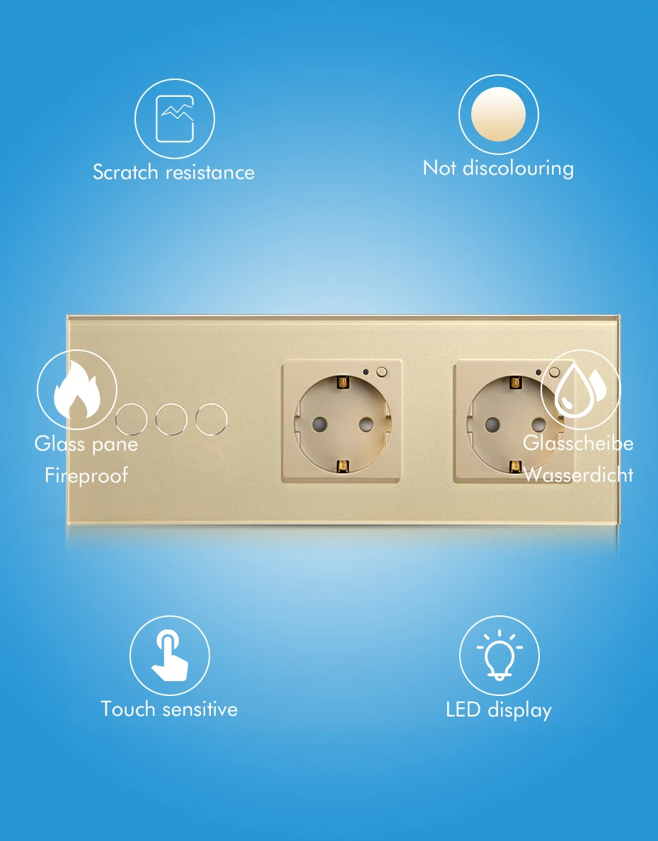 BSEED Золотой Цвет Wi-Fi, сенсорные выключатели 1/2/3 Gang 2 Way светильник выключатель Smart Life с двойными стенками, Мощность розетки Google Alexa Tuya