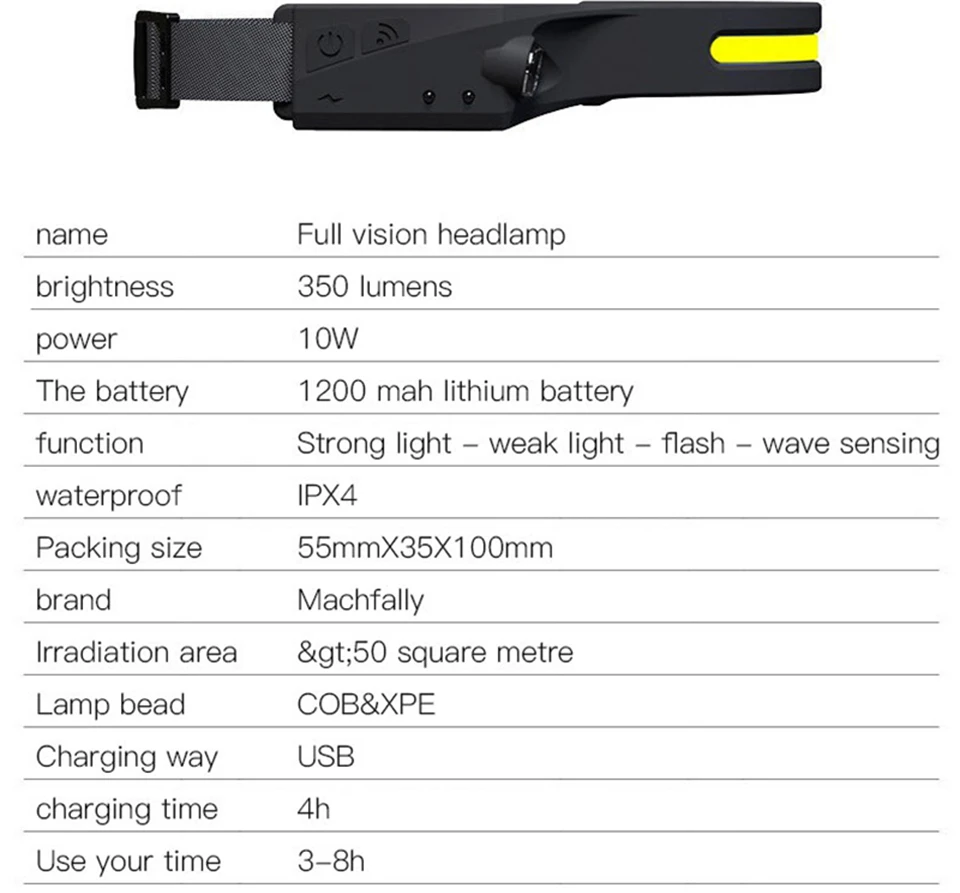 Светодиодный головной фонарь с датчиком, Головной фонарь со встроенным аккумулятором и зарядкой по USB, 5 режимов освещения, Ceholyd