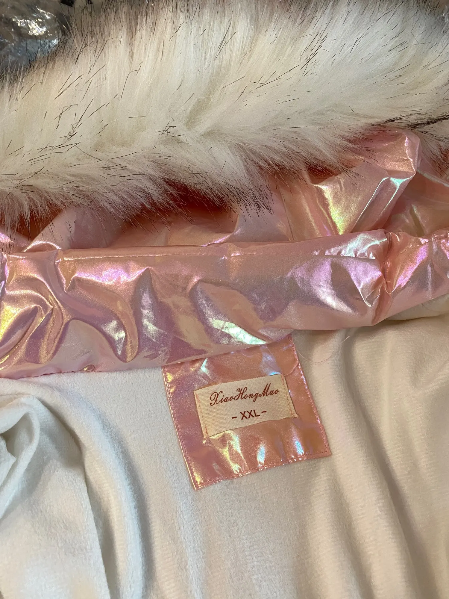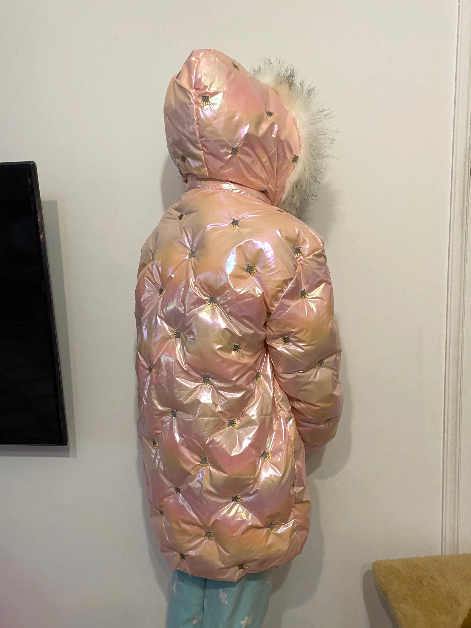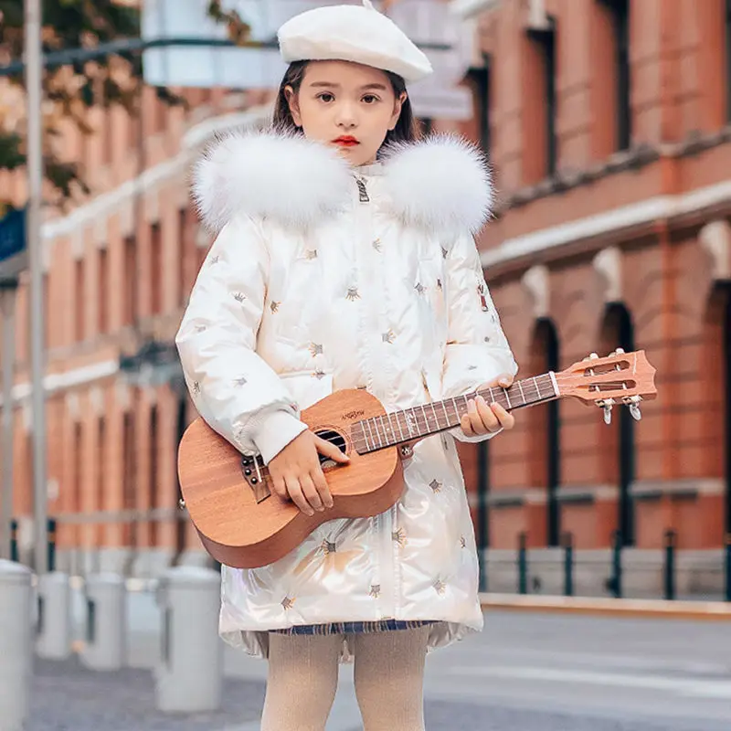 Зимнее хлопковое пальто с капюшоном и меховым воротником для девочек, детская теплая водонепроницаемая зимняя куртка средней длины с подкладкой и ярким лицом
