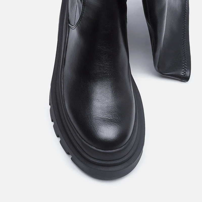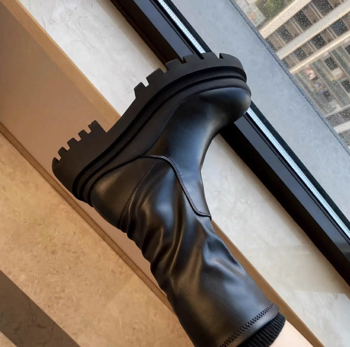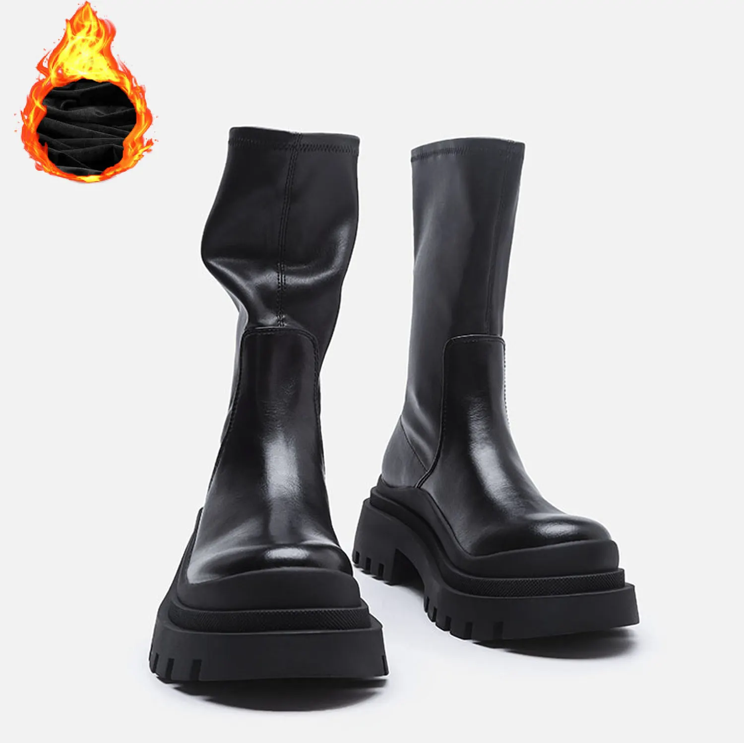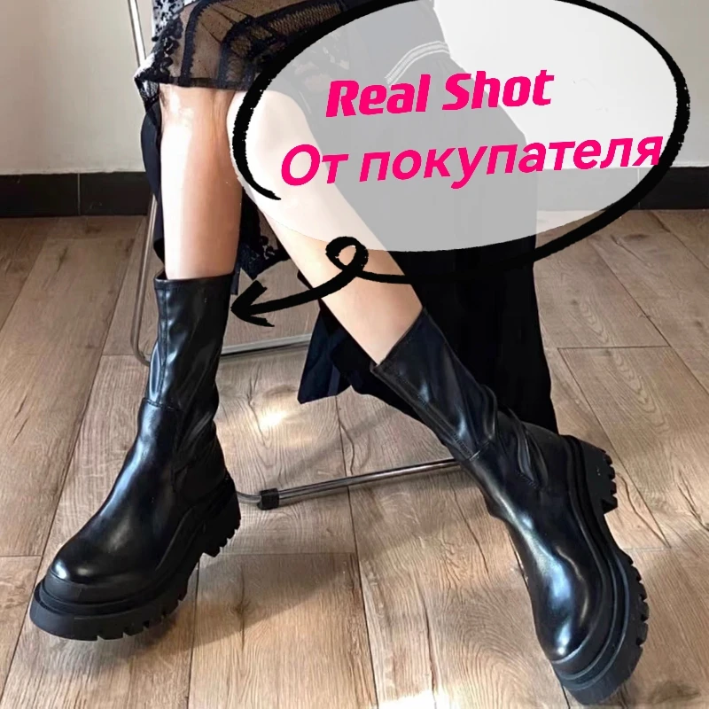 Новинка 2021, Плюшевые Ботинки Челси, женские ботильоны, модные длинные ботинки на массивной подошве без шнуровки, бархатные черные короткие ботинки из натуральной кожи