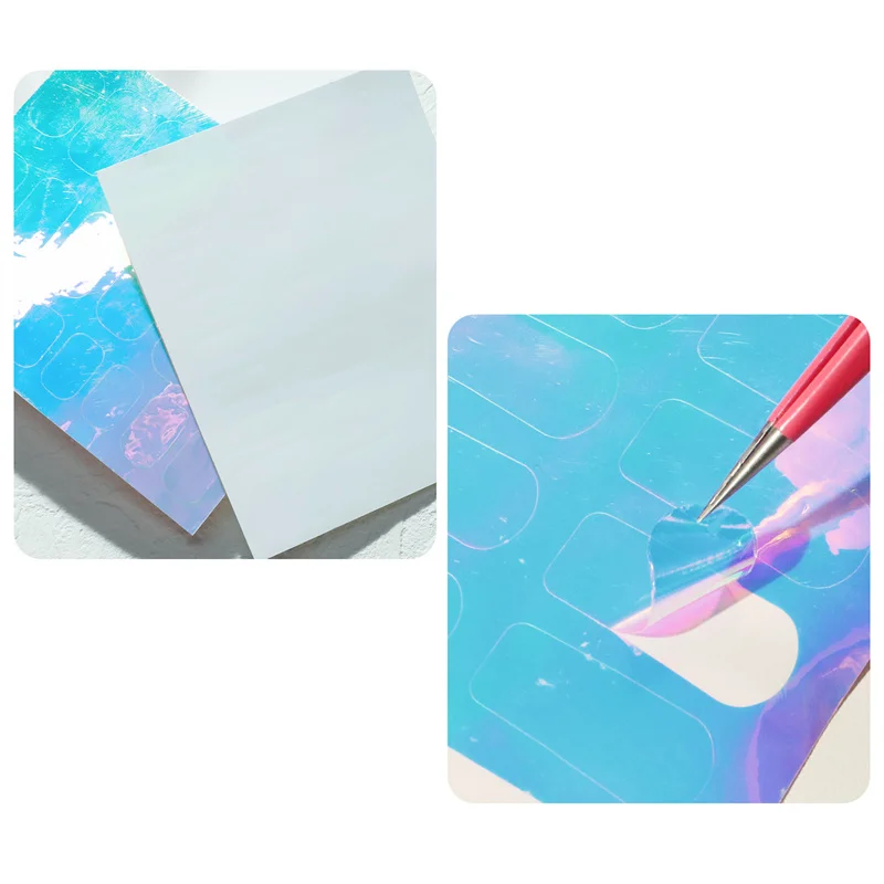 Наклейка для ногтей Аврора из стеклянной фольги s, японская клетчатая бумага с льдом, голографическая лазерная наклейка для маникюра, наклейка, украшения для дизайна ногтей