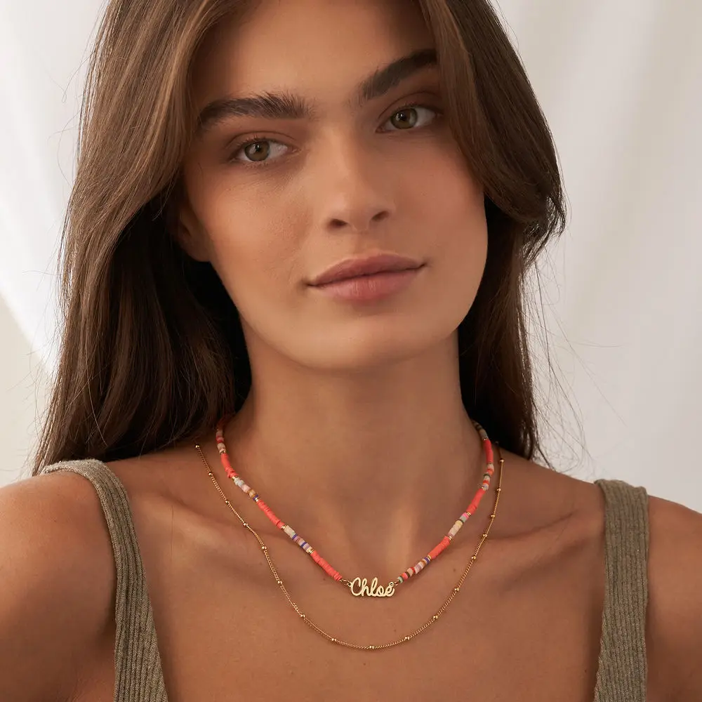 Сладкое и кислое ожерелье с золотым покрытием-это модный предмет, который вы захотите войти в свой гардероб! Эта часть является частью коллекции бусин с целью сложить с другими игривыми фигурами. Вдохновленное летним лагерем и поделками ручной работы, это ожерелье придает стильный вид любому наряду. Носите постоянное напоминание о веселых временах с друзьями с ностальгическим глэм, который принимает в этом новом десятилетии. Особенности:Фимо бусиныИзготовлено из серебра 925 пробыИменная табличка, которую нужно подгонятьУзор из бисера может быть не в одном заказе на всех ожерельях