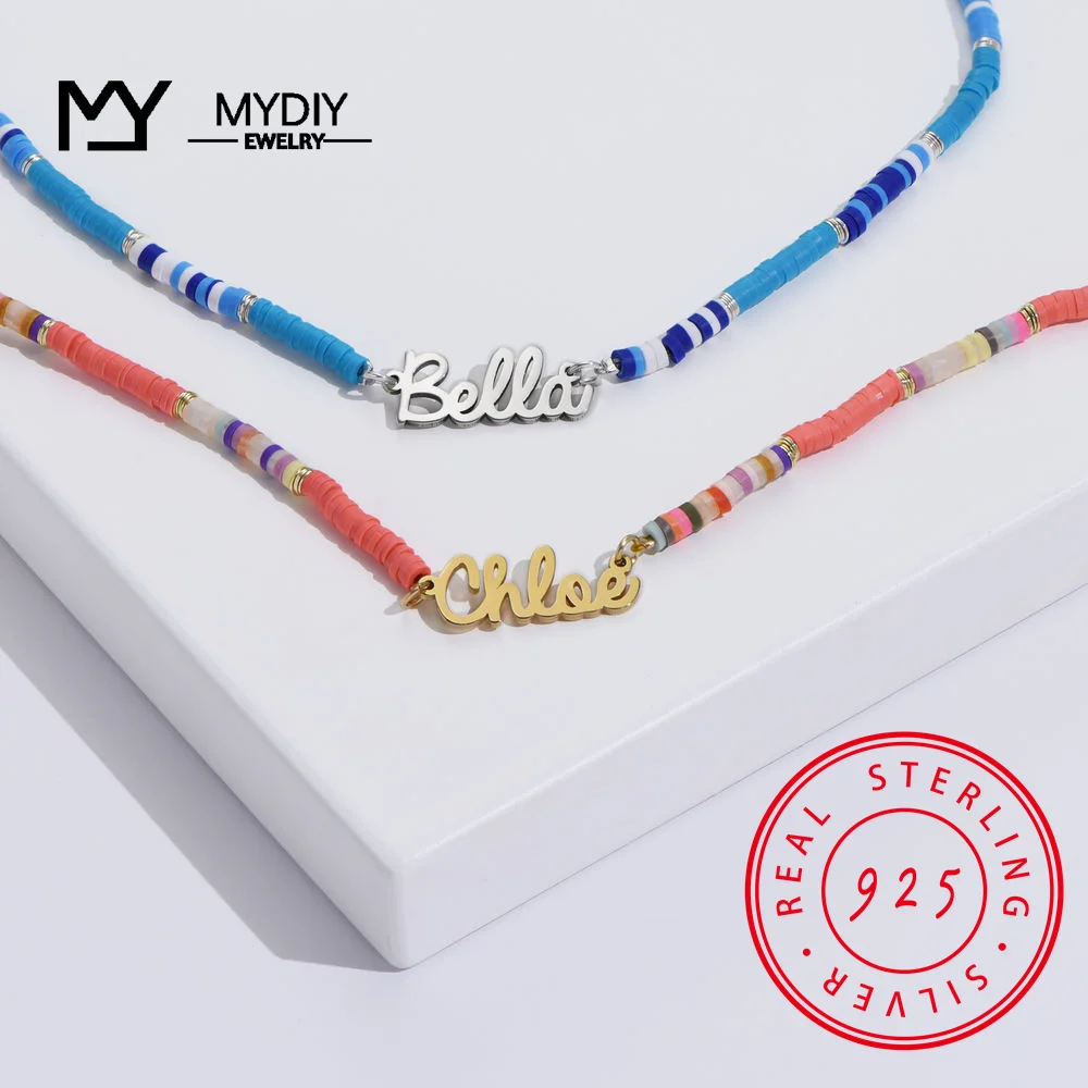 Ожерелье из серебра 925 пробы с бусинами Fimo, Радужное детское ожерелье, ожерелья ручной работы для одежды, аксессуары для женщин