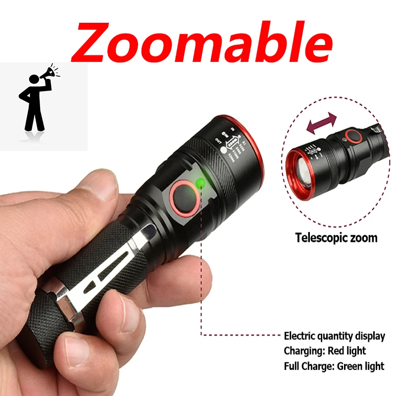 Светодиодный фонасветильник m-l T6, USB-перезаряжаемый фонасветильник с аккумулятором 18650, 3000 люмен, алюминиевый водонепроницаемый 3-режимный фонарь для велосипеда, кемпинга