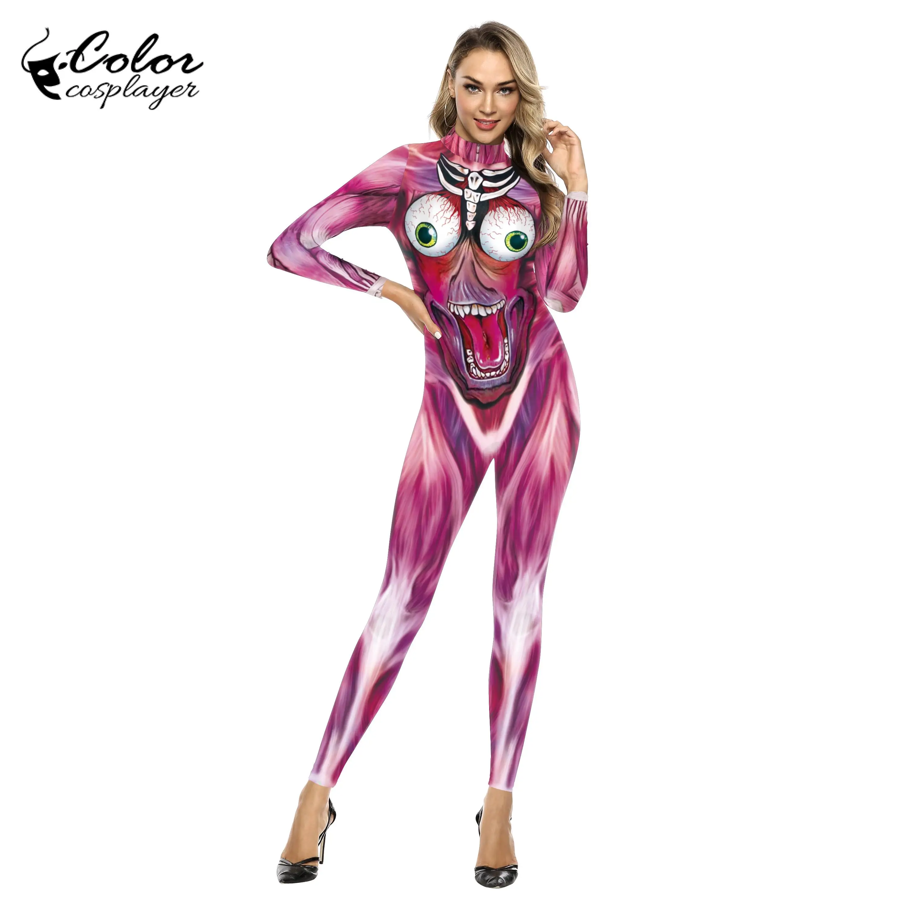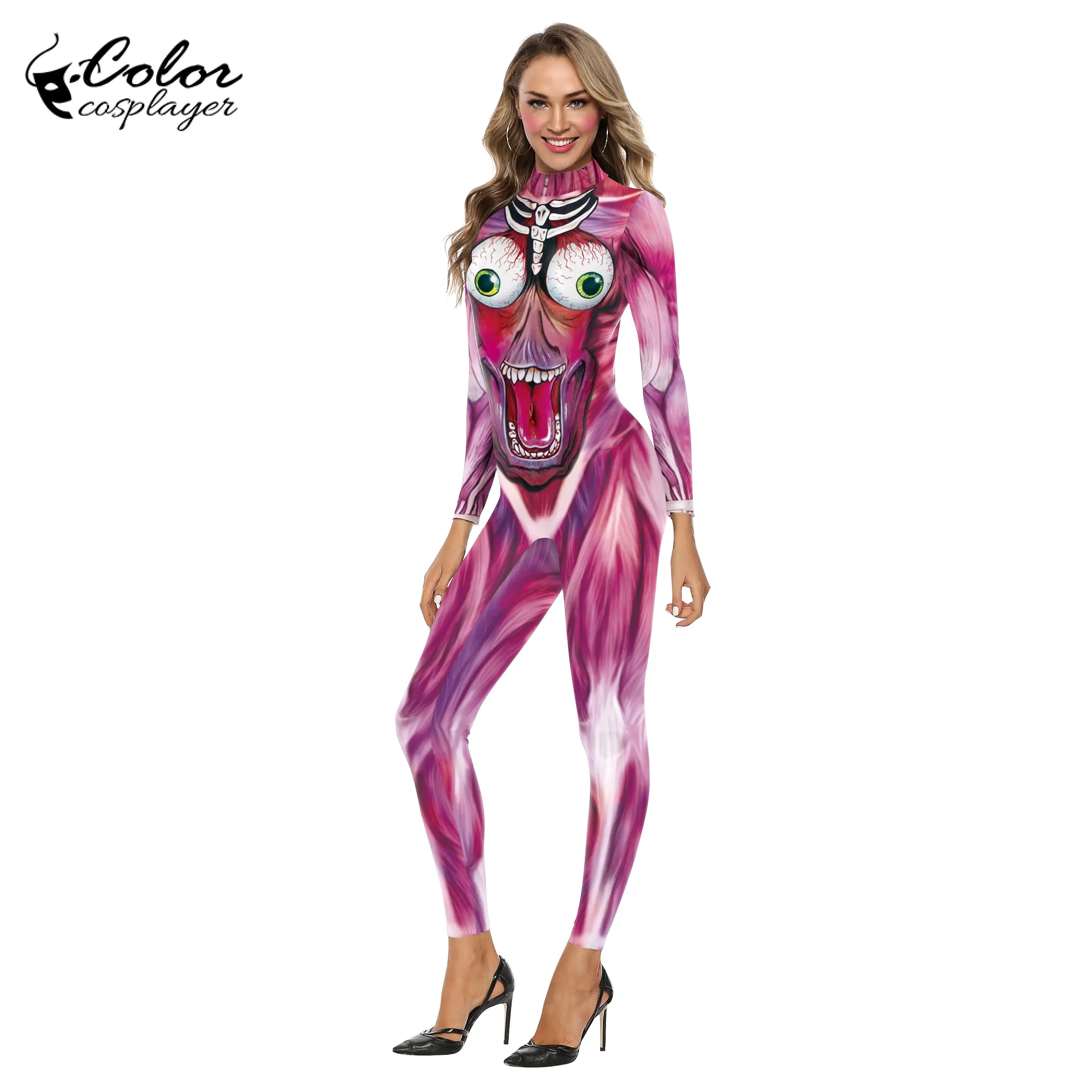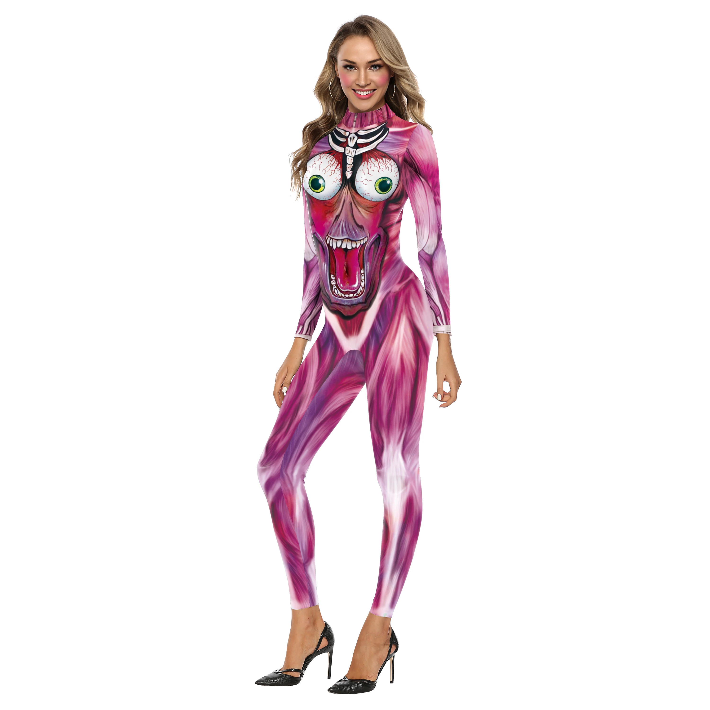 Костюм для косплея на Хэллоуин, боди на молнии с черепом, костюмы д...