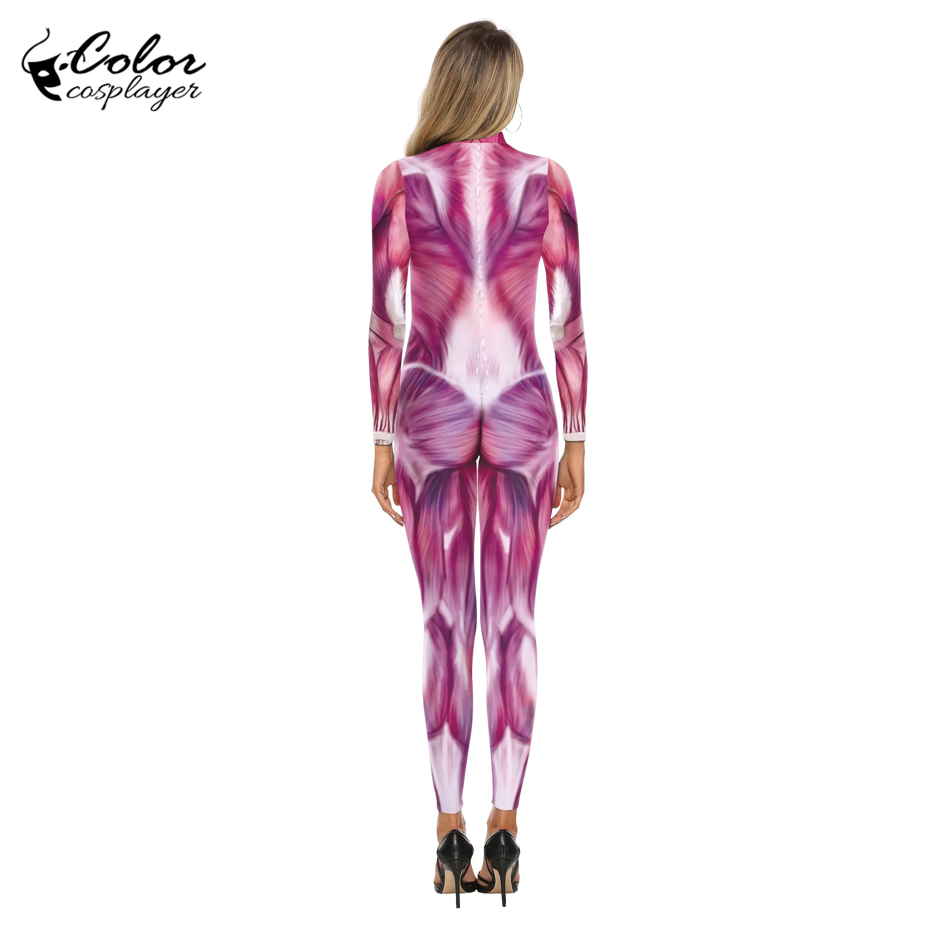 Женский костюм для косплея на Хэллоуин, эластичный комбидресс с длинным рукавом и цифровой печатью