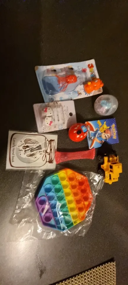 Я очень разочарован игрушечной мистической упаковкой. Я получил 2 фиджет-игрушки, а остальные 8 включали Карты Покемон, наклейки (я думаю, что они), соединитель кабеля мобильного телефона, игрушечный мини-грузовик и 4 других предмета дрявых игрушек, которые в основном являются мусором. Полная трата денег.
