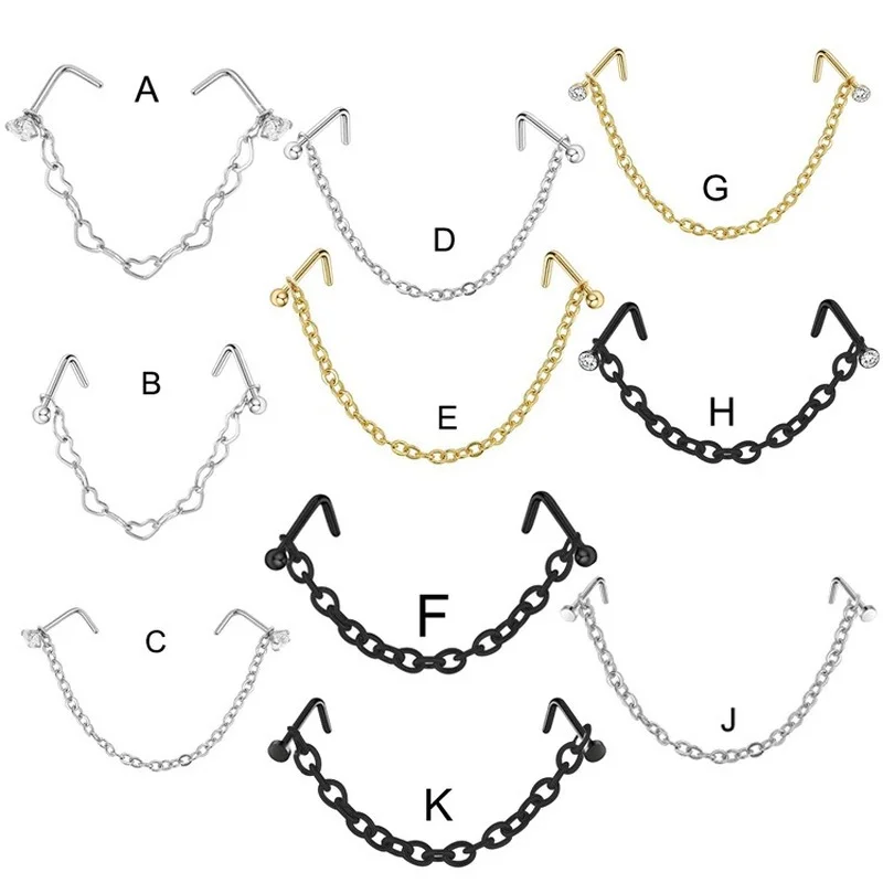 Двойное кольцо для пирсинга Женская ноздри циркониевая нержавеющая сталь для носа женская серьга
