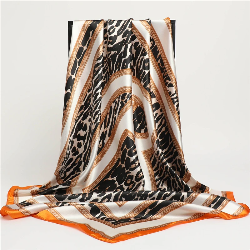 Роскошный брендовый атласный Шелковый квадратный шарф для женщин дизайнерский хиджаб искусственная накидка шали бандана Женская завязка для волос тюрбан фуляр
