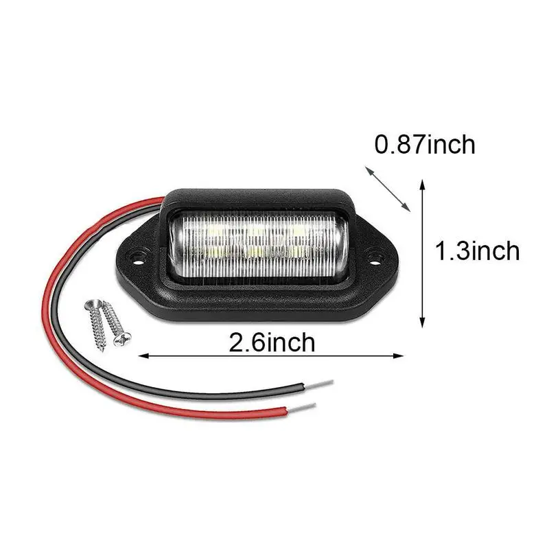 1 шт. черный 6 светодиодный номерной знак лампы для грузовиков внедорожниковОписаниеСупер яркий светодиодный светильник номерного знака, обеспечивает максимальную видимость и безопасность. Может использоваться как светильник номерного знака, ступенчатый светильник, дверной светильник. Подходит для мотоциклов, лодок, автомобилей, грузовых автомобилей, трейлеров, RV, украшенное мозаикой из драгоценных камней, 12V. Особенности продукта100% новый товар высокого качества.6 светодиодный Белый ксеноновый светодиодный светильник, супер яркий светодиодный светильник обеспечивает максимальную видимость и безопасность, белый светильник, цветовая температура 6000K.Универсально подходят для всех лодки автомобили, грузовых автомобилей, трейлеров, RV, украшенное мозаикой из драгоценных камней, 12V.Длительный срок службы и низкое энергопотребление.Простота установки, прямой болт, ударопрочность.Печатная плата полностью запечатана эпоксидной смолой, чтобы обеспечить ее водонепроницаемость.Идеально подходит для освещения интерьеров транспортных средств, включая footwells, дорожки, таблицы карты и другие области.Может использоваться как светильник номерного знака, ступенчатый светильник, дверной светильник.Простой в использовании, просто закрутите винт, красный провод к положительному, черный провод к отрицательному.Водонепроницаемый дизайн, не беспокойтесь о дождливых днях. Спецификация:Тип устройства: светодиодный светильник номерного знакаМатериал: ПоликарбонатСветильник источник света: светодиодныйЦвет корпуса: черныйСветильник Цвет: белыйЦветовая температура: 6000KМатериал: ПоликарбонатНапряжение: 12 ВМощность: 1,8 WТок: 0.3AПодключение: 2 проводаУстановка: 12v лодки, самолеты, автомобили, RV, мотоцикл и грузовикФункция: номерной знак/шаг/дверные огниРазмеры: 2,6 (L)x1.3(W)x0.87(H) дюймовПроводка:Черный-отрицательныйБелый-положительный Посылка включает в себя:1x светодиодный светильник номерного знака.2 винта.