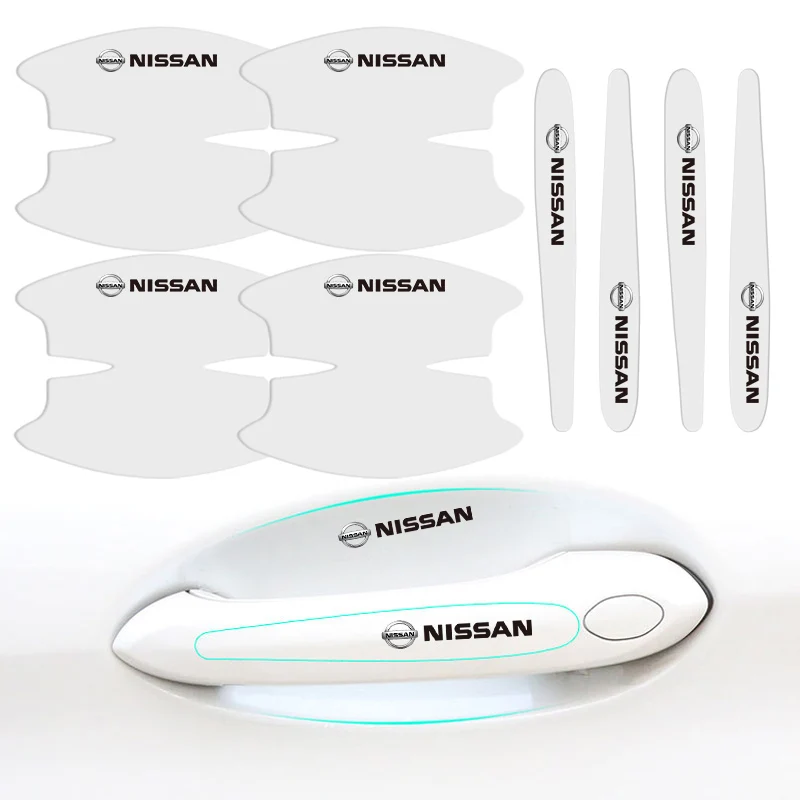 8 шт дверь логотипа автомобиля ручка наклейки TUP против царапин защитная пленка для Nissan Juke Nismo Patrol Rogue GTR Maxima Altima Micra
