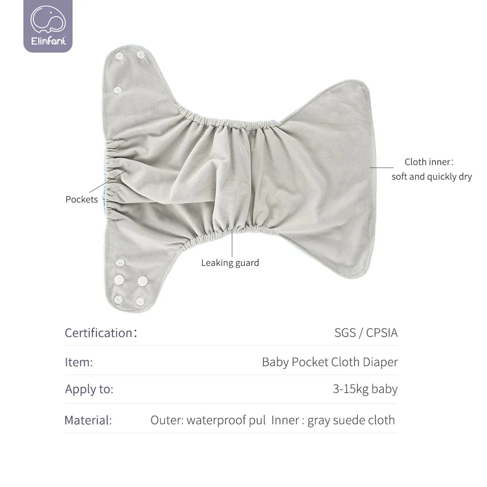 Elinfant 10 шт. замшевая ткань быстросохнущая новый дизайн моющиеся Регулируемые Многоразовые для 3-15 кг тканевые карманные подгузники