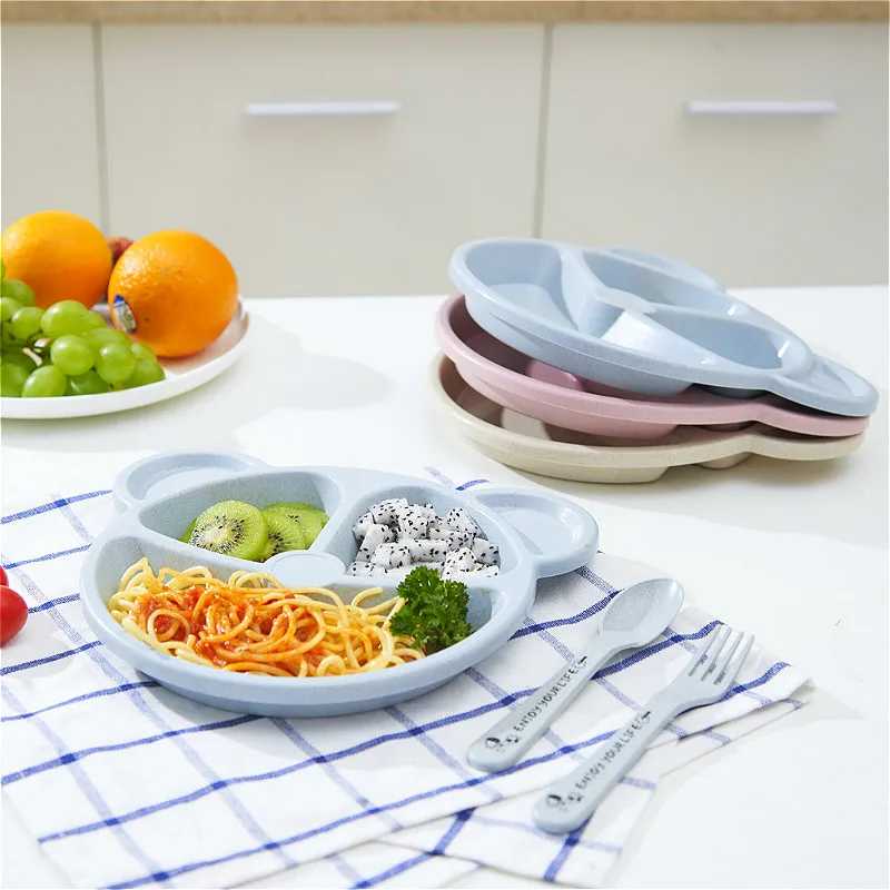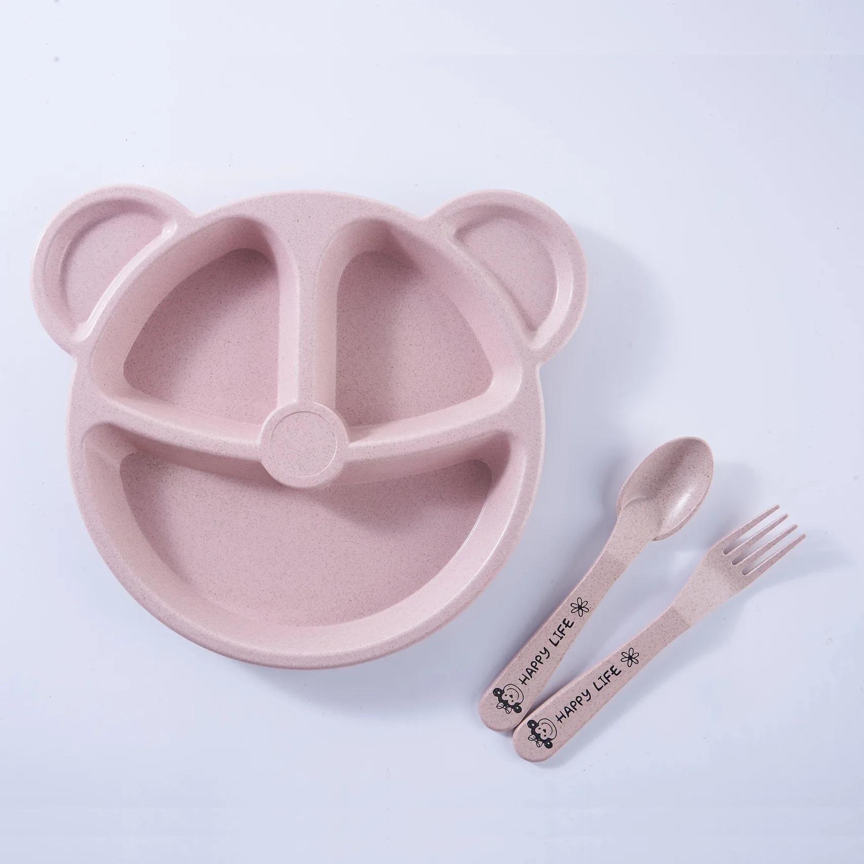 3 шт.компл. детская миска + ложка + вилка, посуда для кормления, мультяшный медведь, детская посуда, для еды, антигорячая тренировочная обеденная тарелка