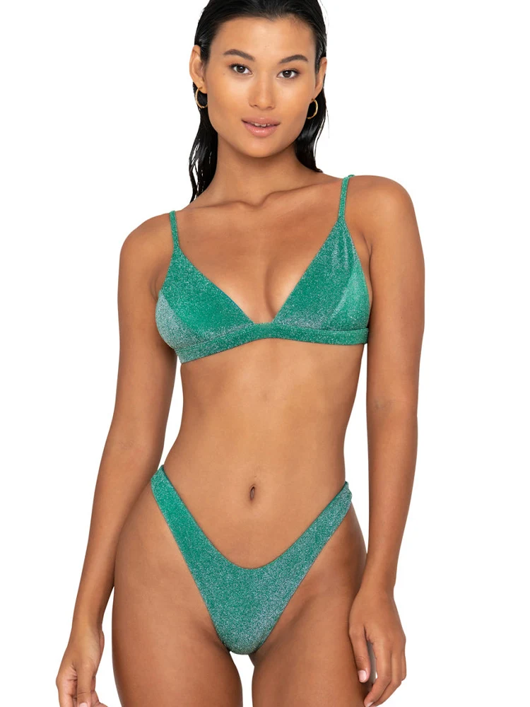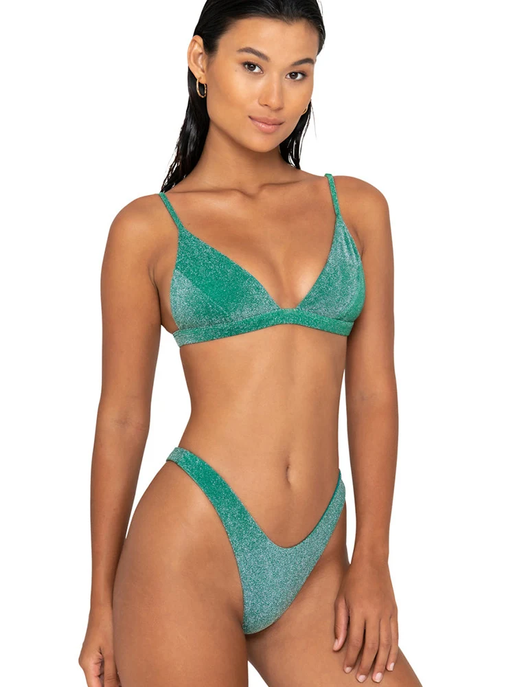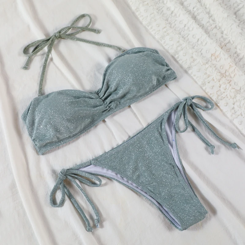Женский купальник, сексуальный комплект бикини без бретелек, блестящая пляжная одежда 2021, зеленые микро стринги, бикини, бразильское бикини