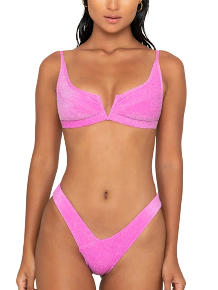 Костюм-двойка, бикини, однотонный купальник, стринги с высоким выре...
