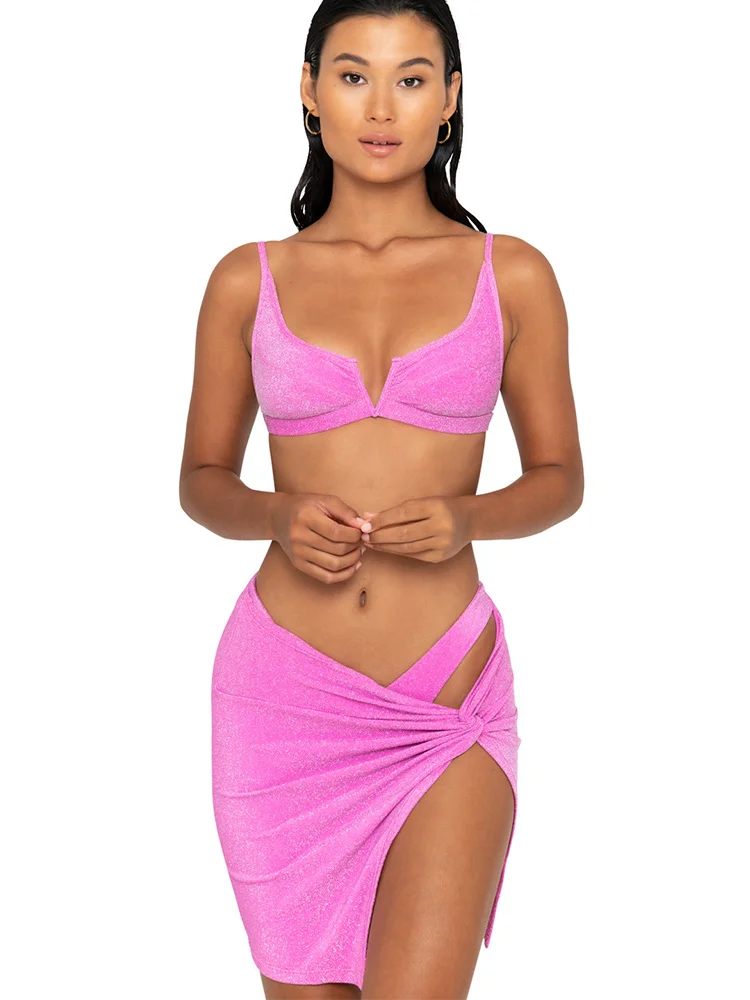 Пляжный комплект из 3 предметов, блестящий купальник, бандажные стр...