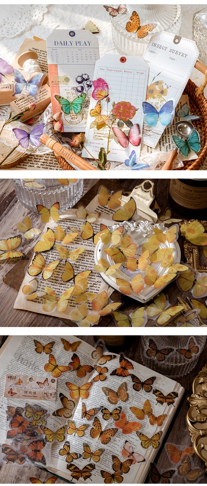 Набор наклеек с бабочками, 40 шт., винтажные наклейки для скрапбуки...