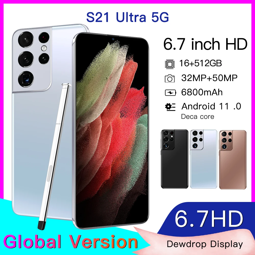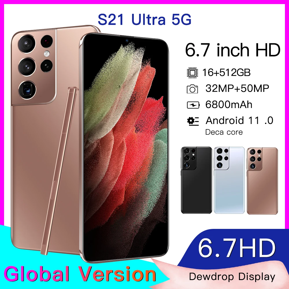 Спецификация: 1. Номер модели: S21Ultra 5G 2. Платформа: Qualcomm 888, Deca Core (последние 10 ядер) 3. Режим ожидания: две sim-карты, два режима ожидания (слот для sim-карты, другой слот для sim-карты или tf-карты) 4. Экран: 6,7 HD + полный Дисплей 1440*3200 5. Динамик: 1511 динамик 6. Частота: GSM850/900/1800/1900 МГц, 3G: WCDMA850/1900/2100 МГц, 4 аппарат не привязан к оператору сотовой связи, 5G 7. Вибрация: Поддержка 8. Цвета: черный/Бронзовый/белый 9. Память: 16 Гб RAM + 512 ГБ ROM 10. Мультимедиа: MP3/MP4/3GP/FM радио/Bluetooth 11. Камера: 32 Мп + 50 МП 12. Многофункциональность: полный экран, распознавание лиц, две sim-карты, Wi-Fi, GPS, датчик гравитации, будильник, календарь, калькулятор, аудио рекордер, видеомагнитофон, WAP/MMS/GPRS, просмотр изображений, электронная книга, мировые часы, задняя вспышка IML 13. Язык s: Поддержка Мути-языка 14. Другие: Система Android OS 11.0 15. Батарея: литий-ионный аккумулятор 6800 мАч 16. Ультра unibody Посылка включает в себя: 1 x смартфон, 1 x адаптер зарядного устройства, 1 х Наушники, 1 x Руководство пользователя, 1 x чехол для телефона, Защитная пленка-1 шт. 1xE-pen Прямые продажи с фабрики, лучшее качество, но низкая цена-наша цель и миссия!
