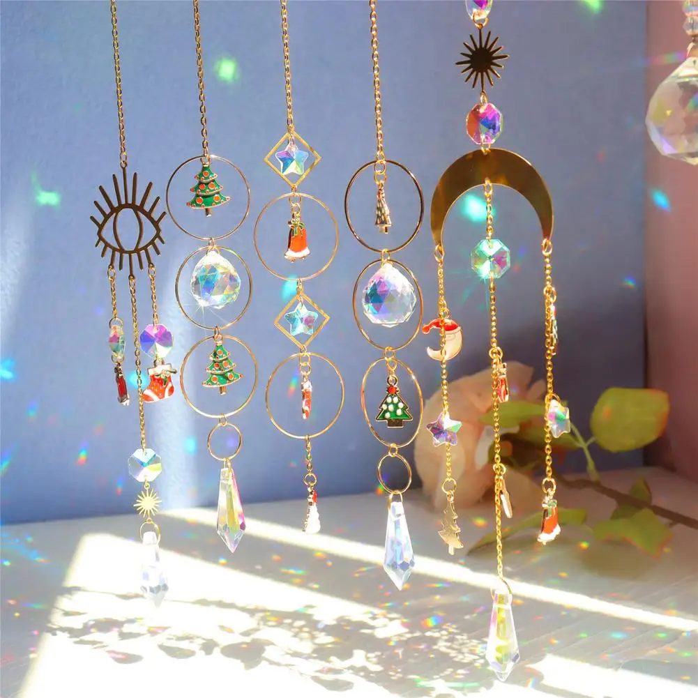 Хрустальные колокольчики, звезда, луна, солнце, подвеска, солнце мечты, Позолоченные Красочные Бусины, подвесные капли для улицы, садовые ветрянки