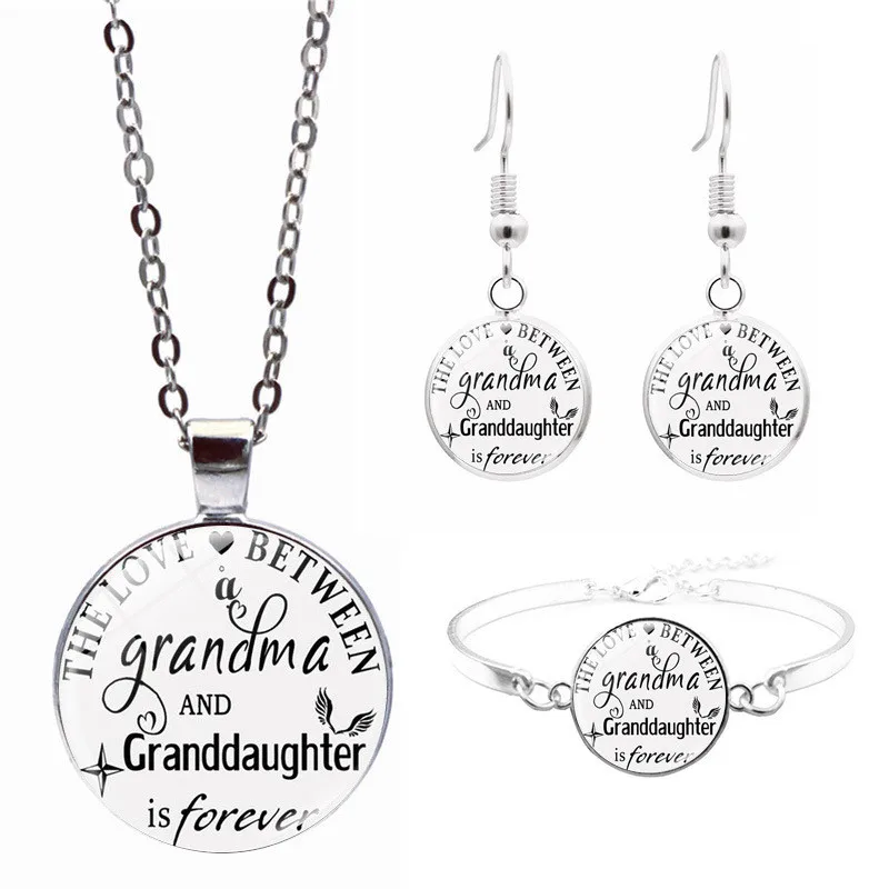 Любовь между бабушкой и внучкой это Forcvcr стеклянная подвеска ожерелье браслет серьги Ювелирный Комплект всего 4 шт. для женщин Мода