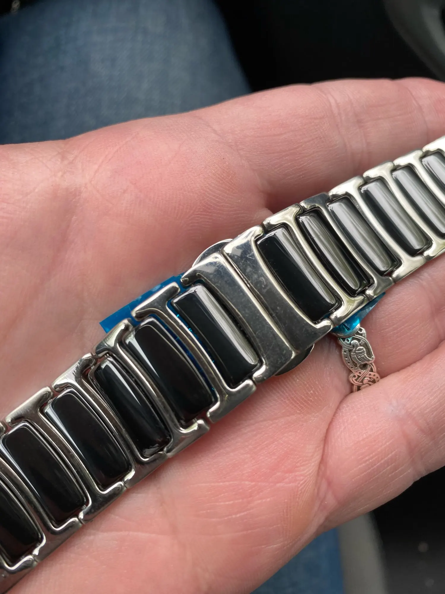 Ремешок не полностью керамический, больше металлический с вставками из керамики, поэтому тяжёлый. Плюс продавцу за приложенную приспособу для регулировки длины.