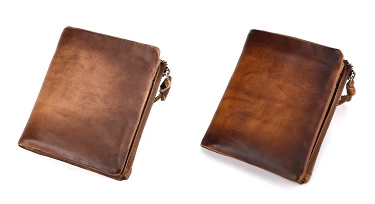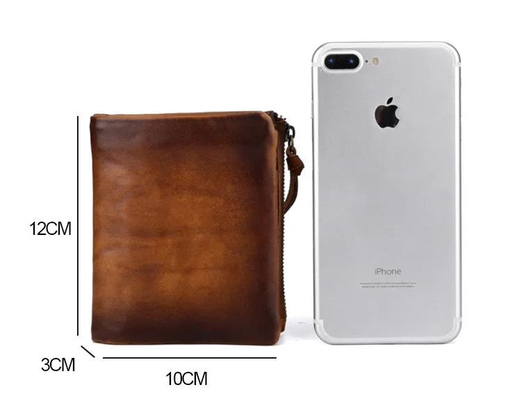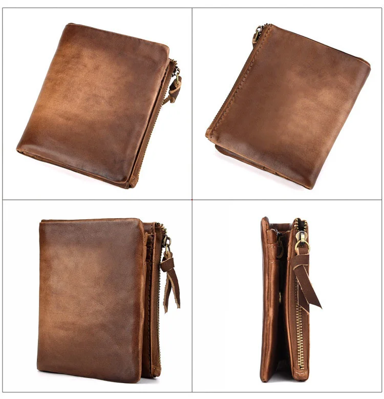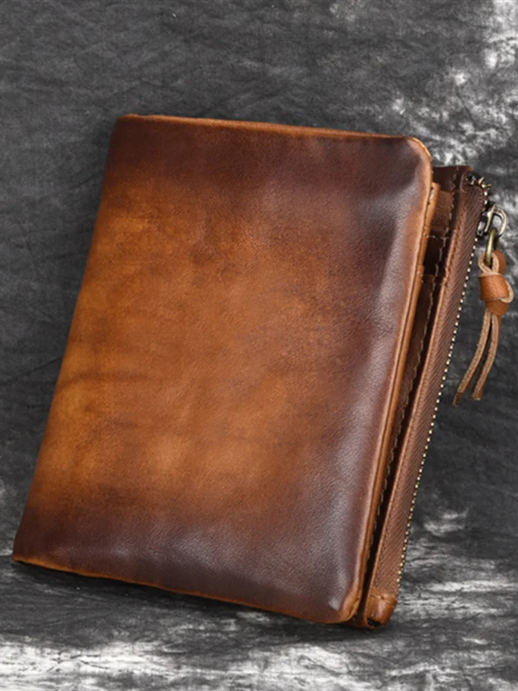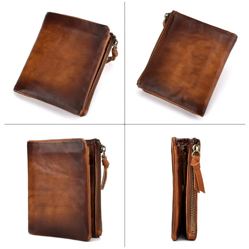 Мужские кошельки из коровьей кожи в стиле ретро, мужские кошельки для монет, короткие кошельки, винтажные мужские многофункциональные кошельки из натуральной кожи с двойной молнией