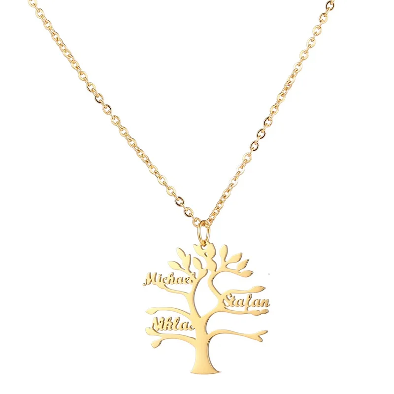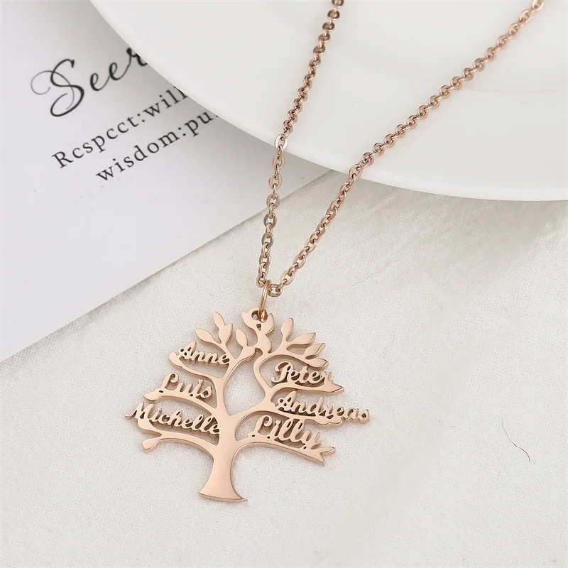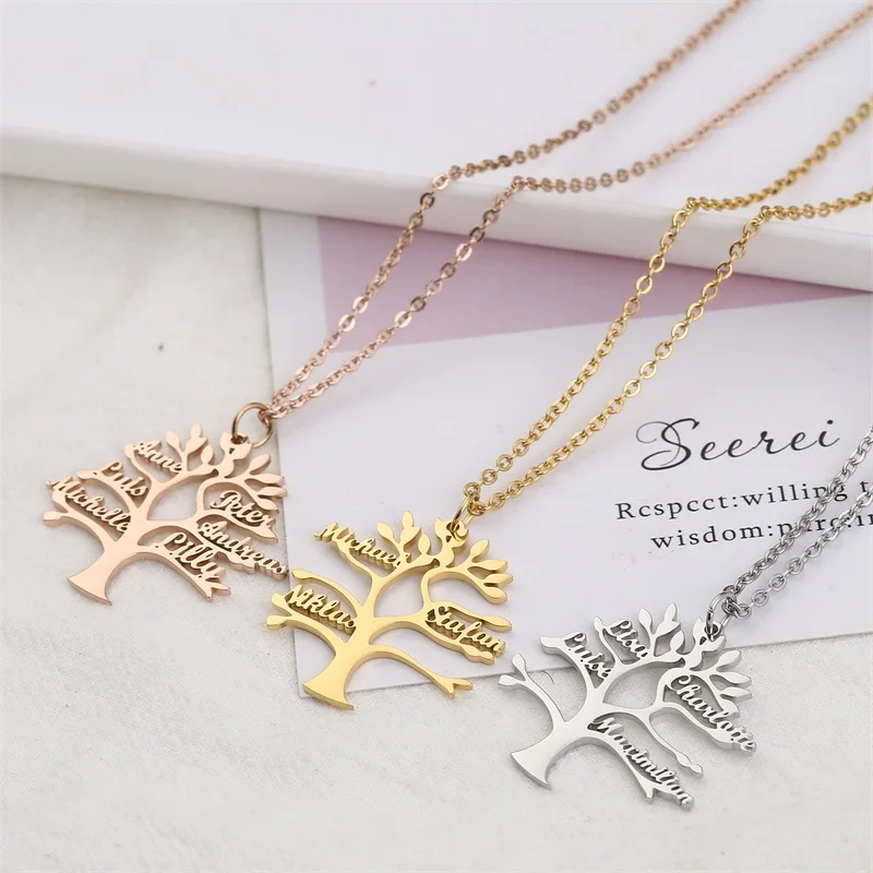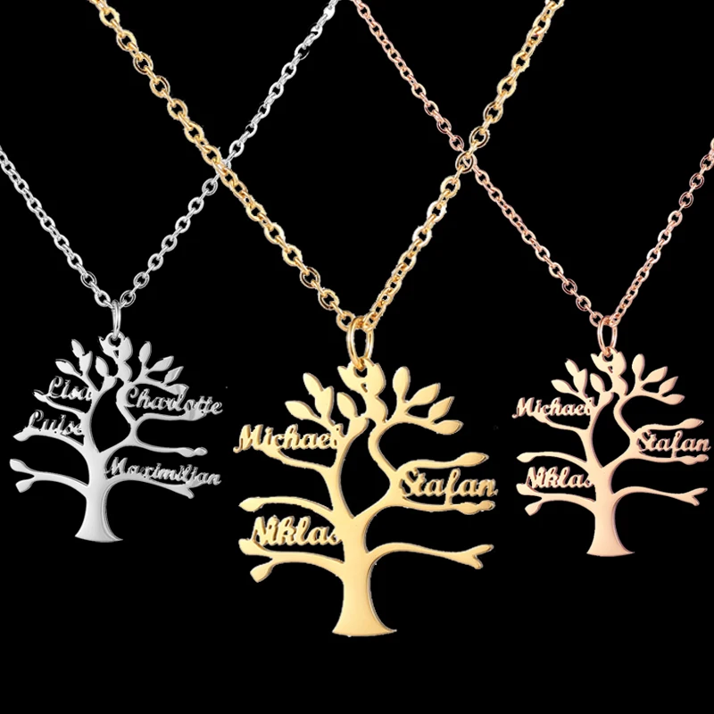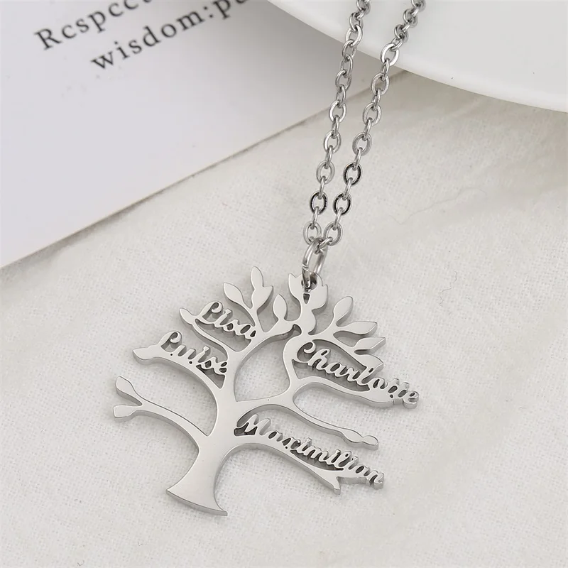 Индивидуальное ожерелье из нержавеющей стали с именем Древа Жизни для женщин, ожерелье с именной табличкой на заказ, бижутерия для всей семьи