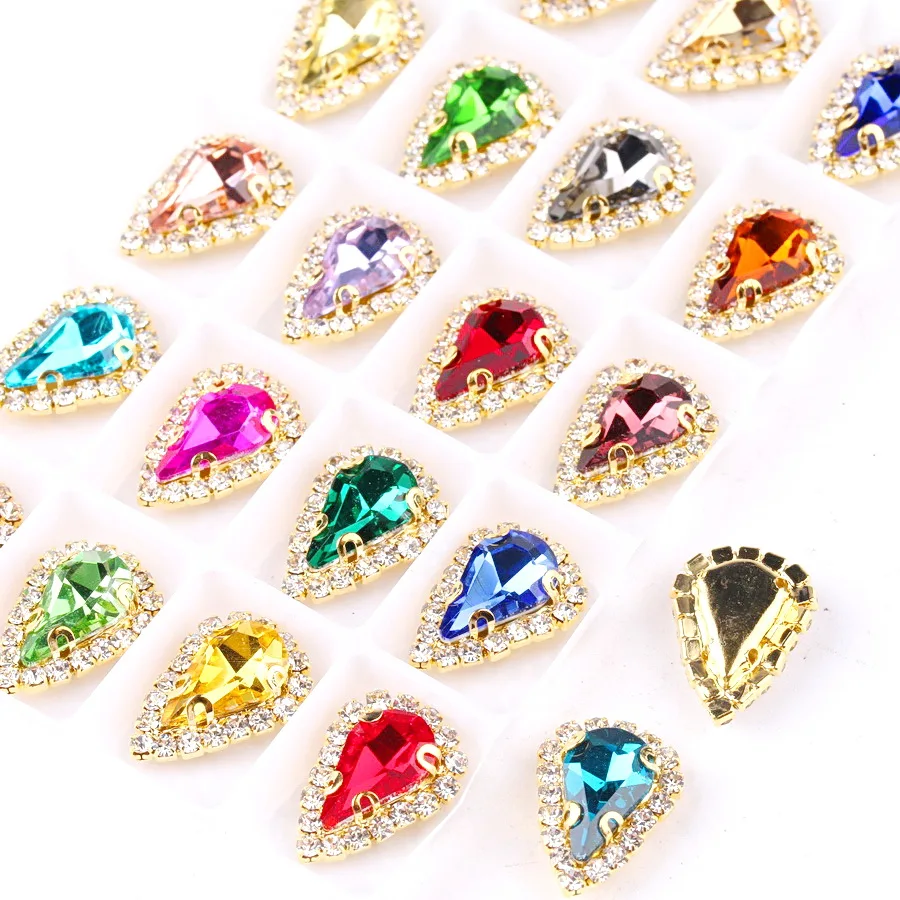 Тонкий стеклянный кристалл в форме капли воды с цепочкой Стразы в настройках золотистых металлических когтей пришить бусины diy отделка