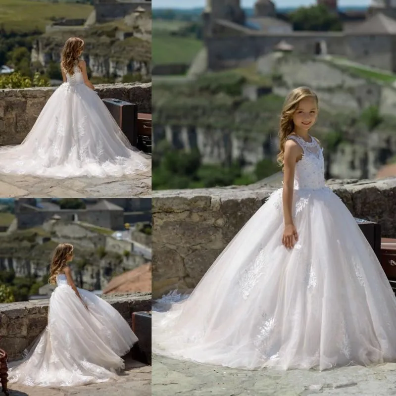 Платье с цветочным принтом для девочек, пушистые кружевные платья без рукавов с аппликацией для официального торжества, подружки невесты, свадьбы Вечерние причастия, вечеринки, выпускного вечера