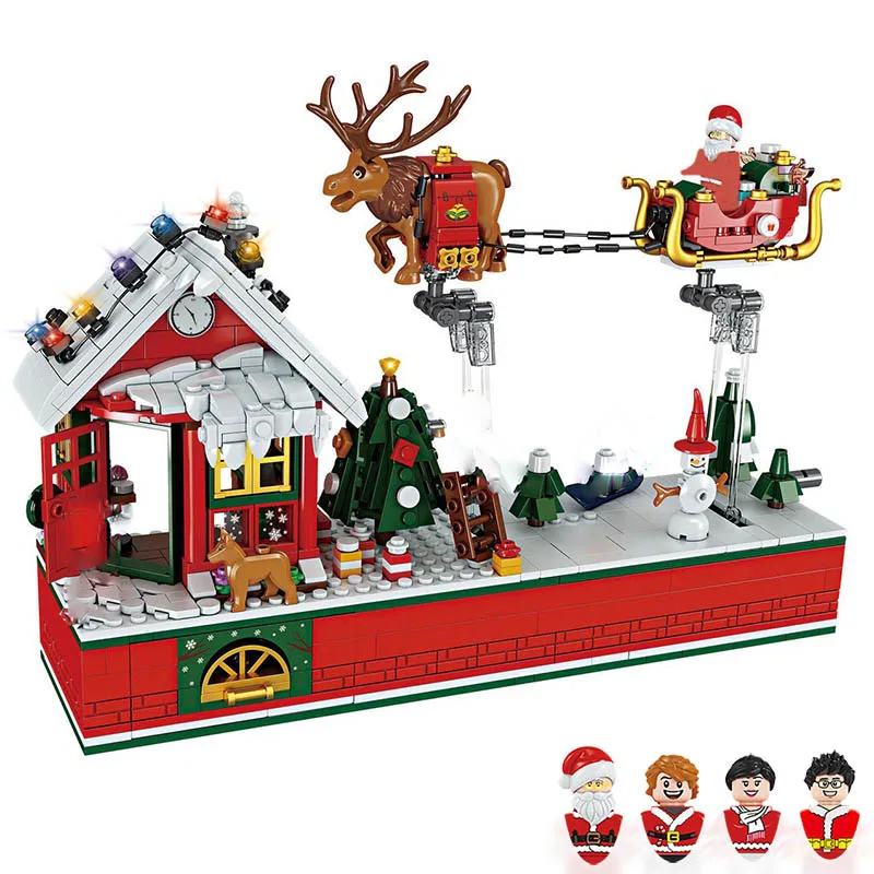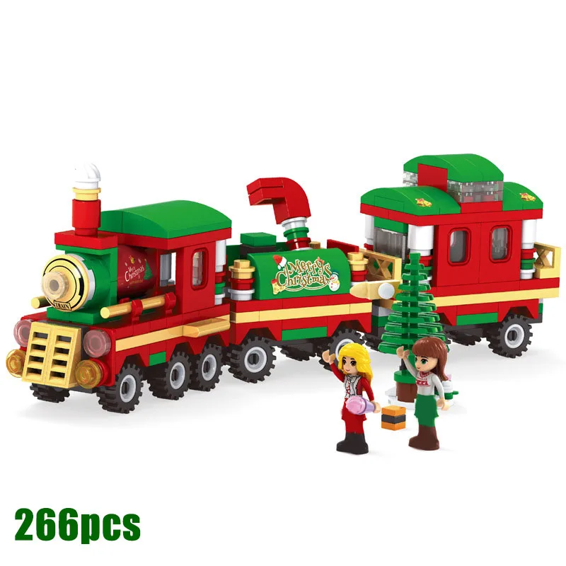 Рождественский дом Санта-Клаус, подарок, зимний поезд, строительный блок, Рождественская мини-кукла, фигурка, строительная игрушка для мальчика, девочки, ребенка
