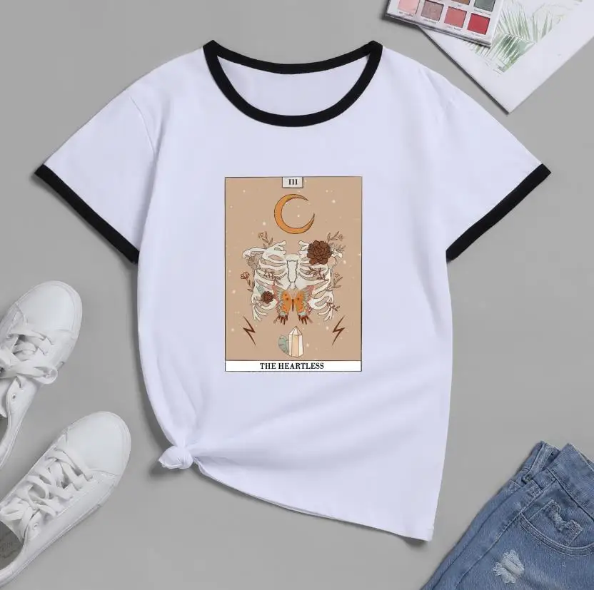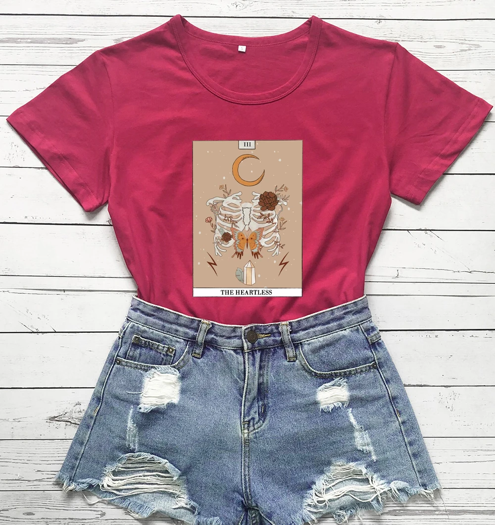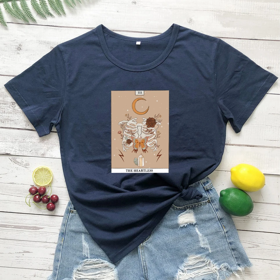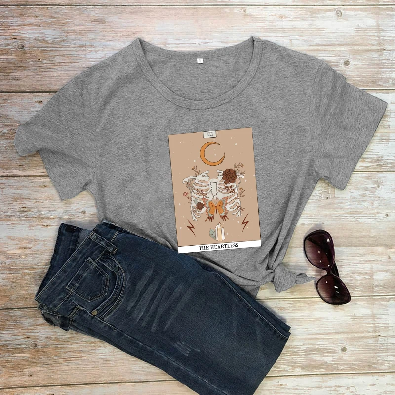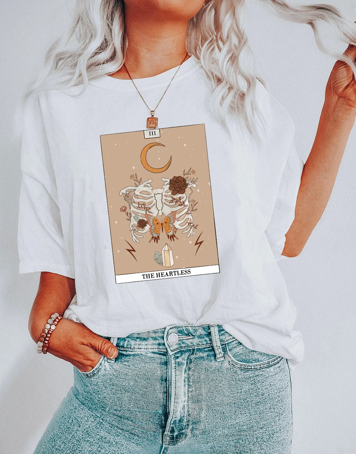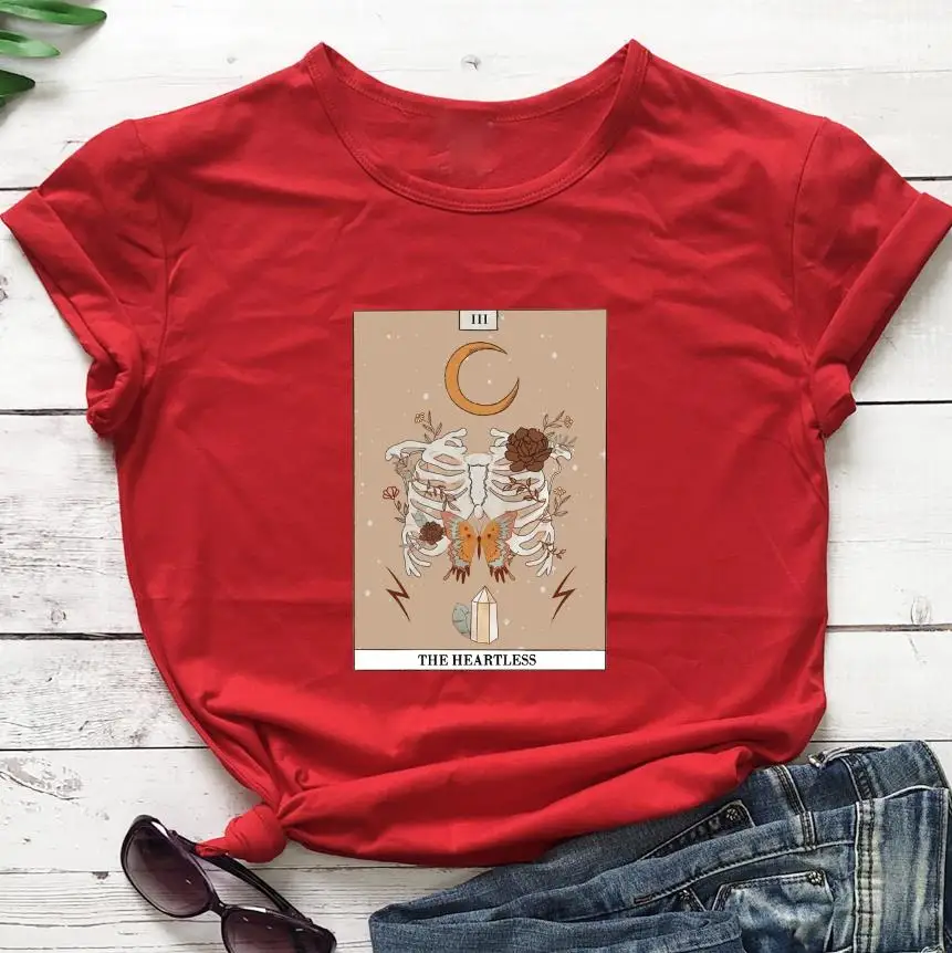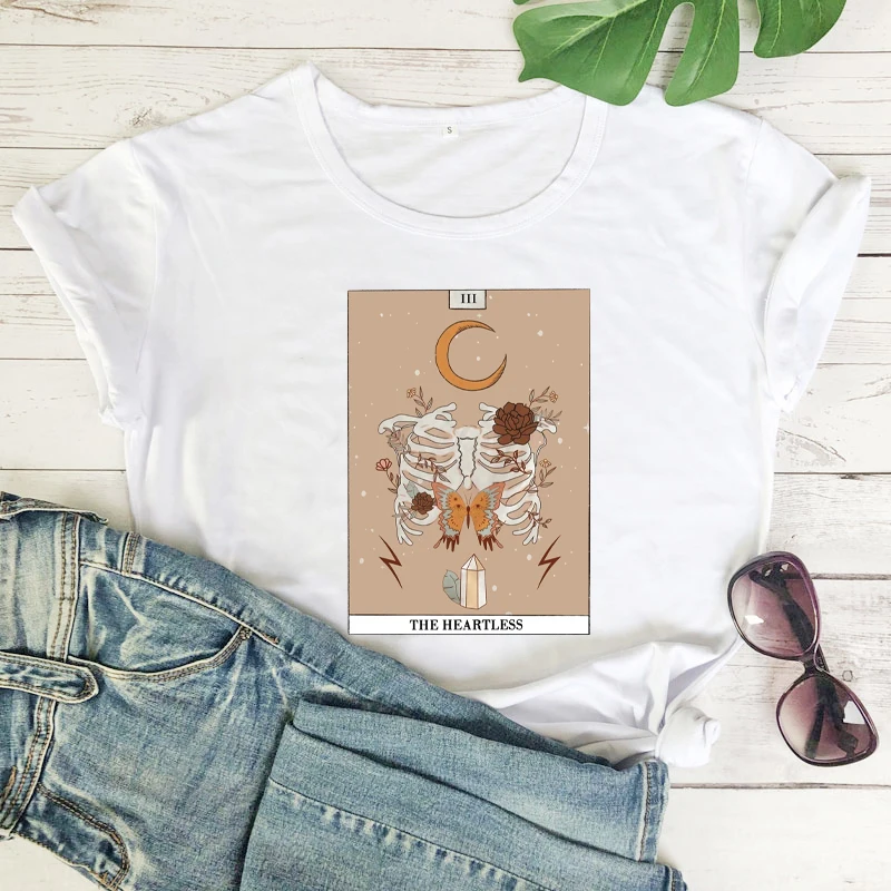 Женская футболка с принтом Таро без сердец, рубашка в стиле бохо, хиппи, футболка в стиле Луна, скелета, Модный повседневный эстетический топ на Хэллоуин