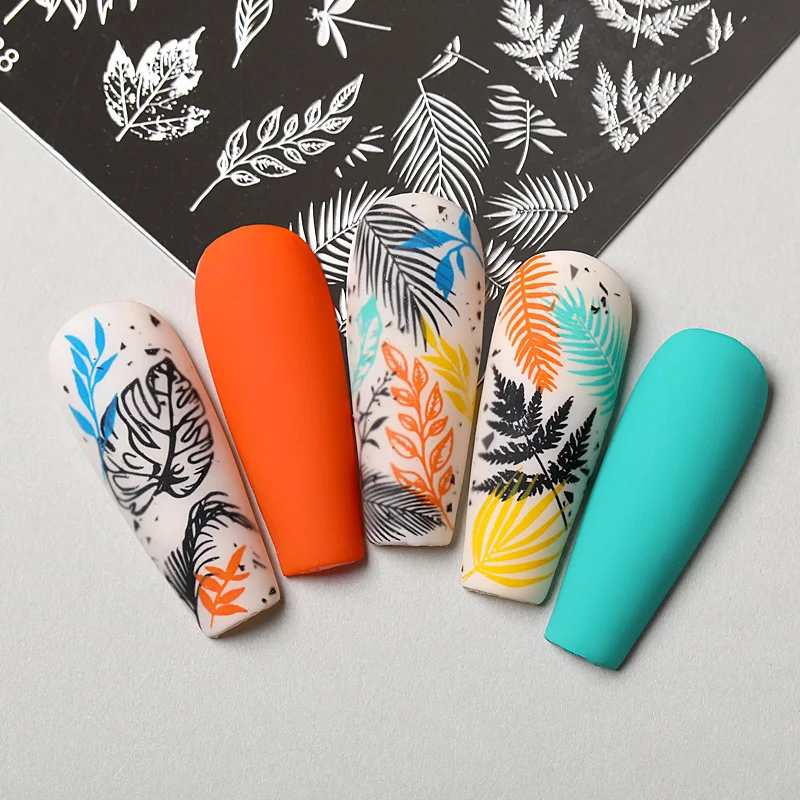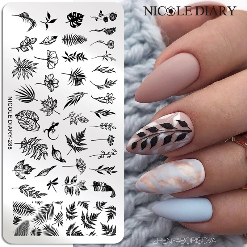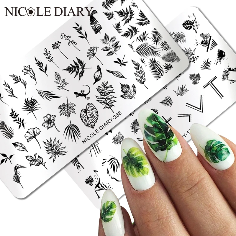 Трафареты NICOLE DIARY для стемпинга пальмовых, банановых, Листьев, снежинок, дизайн для маникюра, Рождественский шаблон для дизайна ногтей