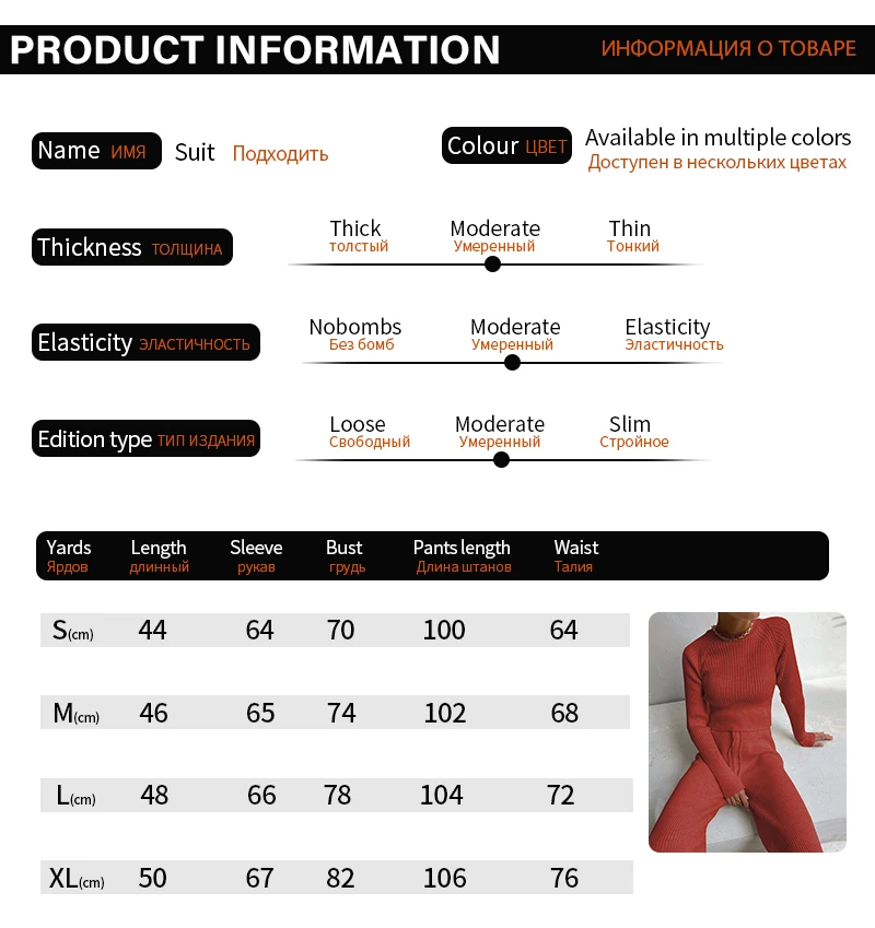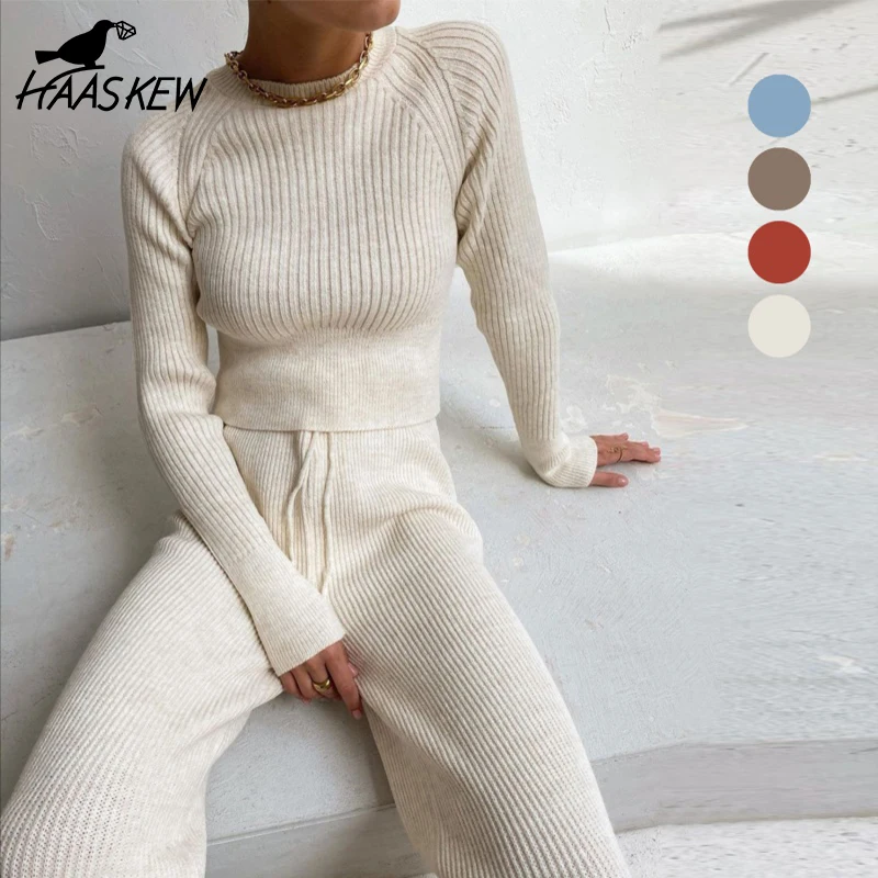 Комплект женский трикотажный с длинными штанами и пуловером, с высокой эластичной талией, 2021