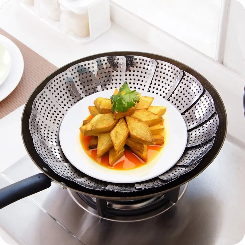 Новая Складная посуда, Паровая корзина из нержавеющей стали для продуктов, сетчатая Пароварка для овощей, пароварка, расширяемый кухонный инструмент, пароварка