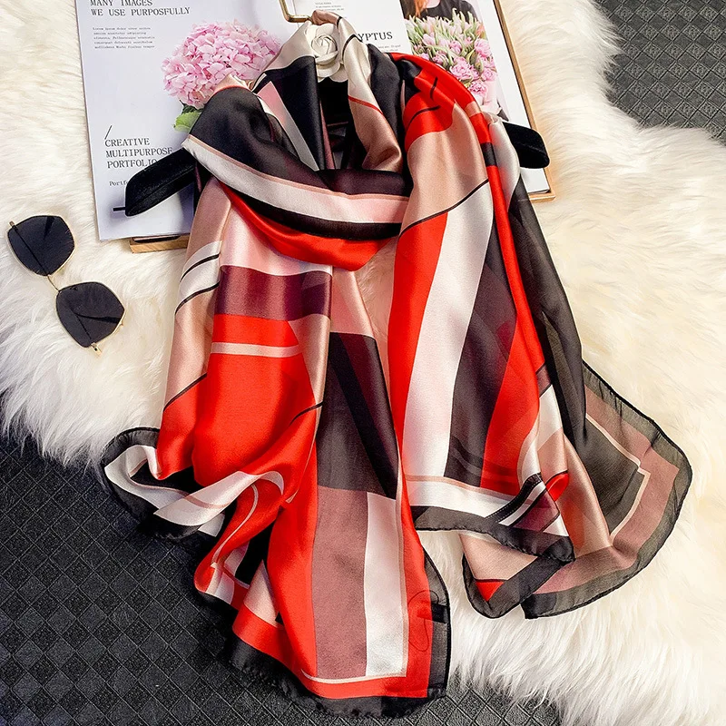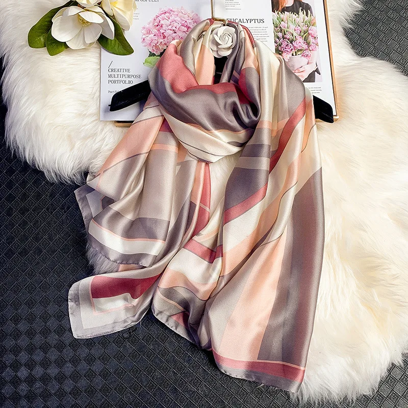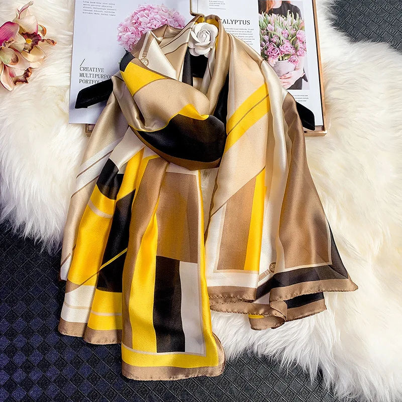 Шарф женский шелковый с принтом, накидка для пляжа, 2021 Пашмина
