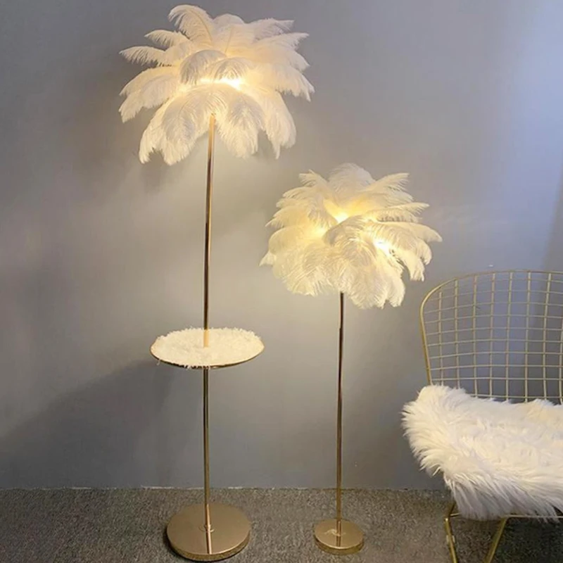 Светильник шная медная Напольная Лампа с перьями, уникальная сетчат...
